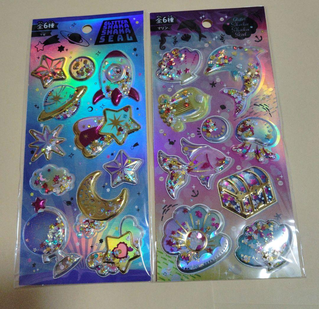 グリッターシャカシャカシール ステッカー 2点セット【宇宙、マリン】