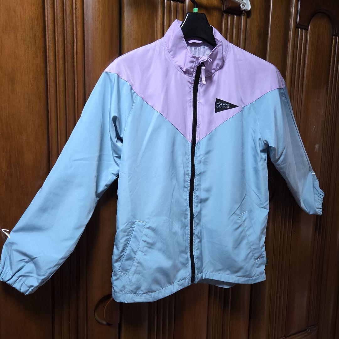 水色と紫のジッパージャケットボケット2個150cm表裏ポリエステル100%