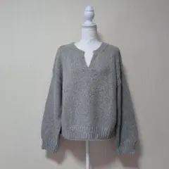 ラジエム 長袖ニット 縄編み キーネック ベージュ ざっくりニット カジュアル