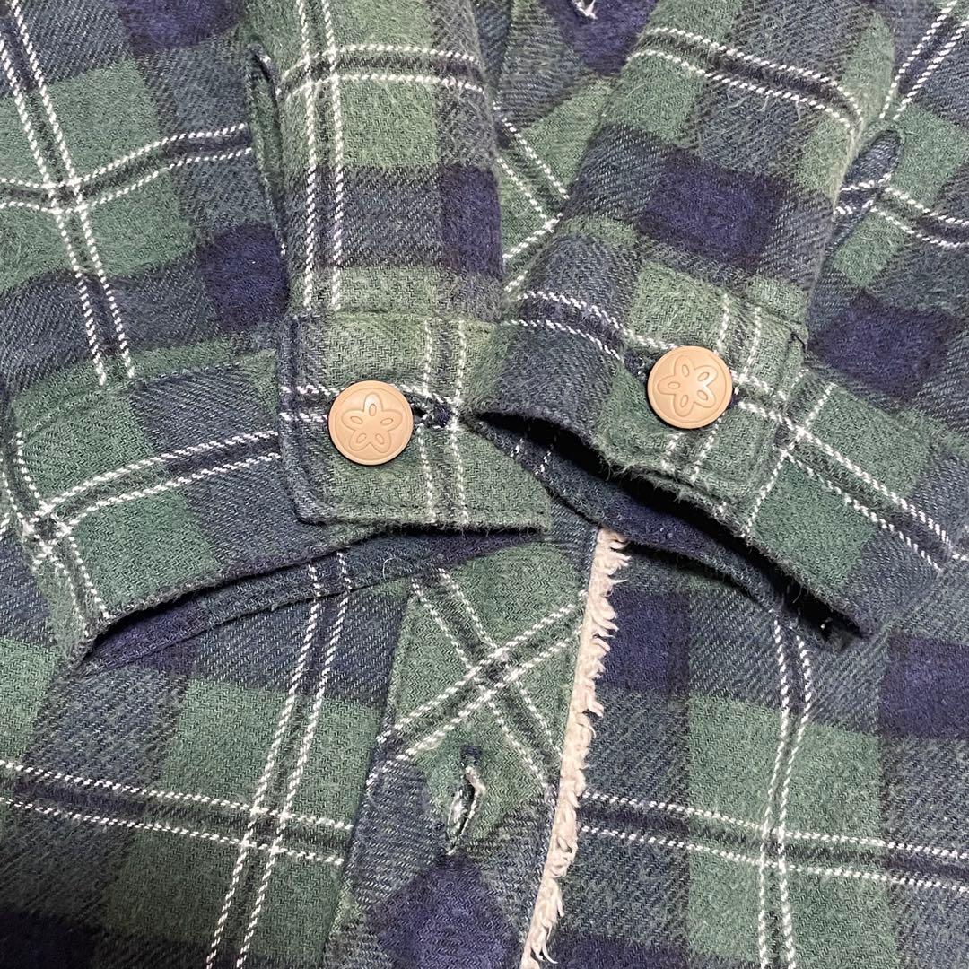 ボア裏地 緑チェックコート 100cm 冬用 花柄ボタン