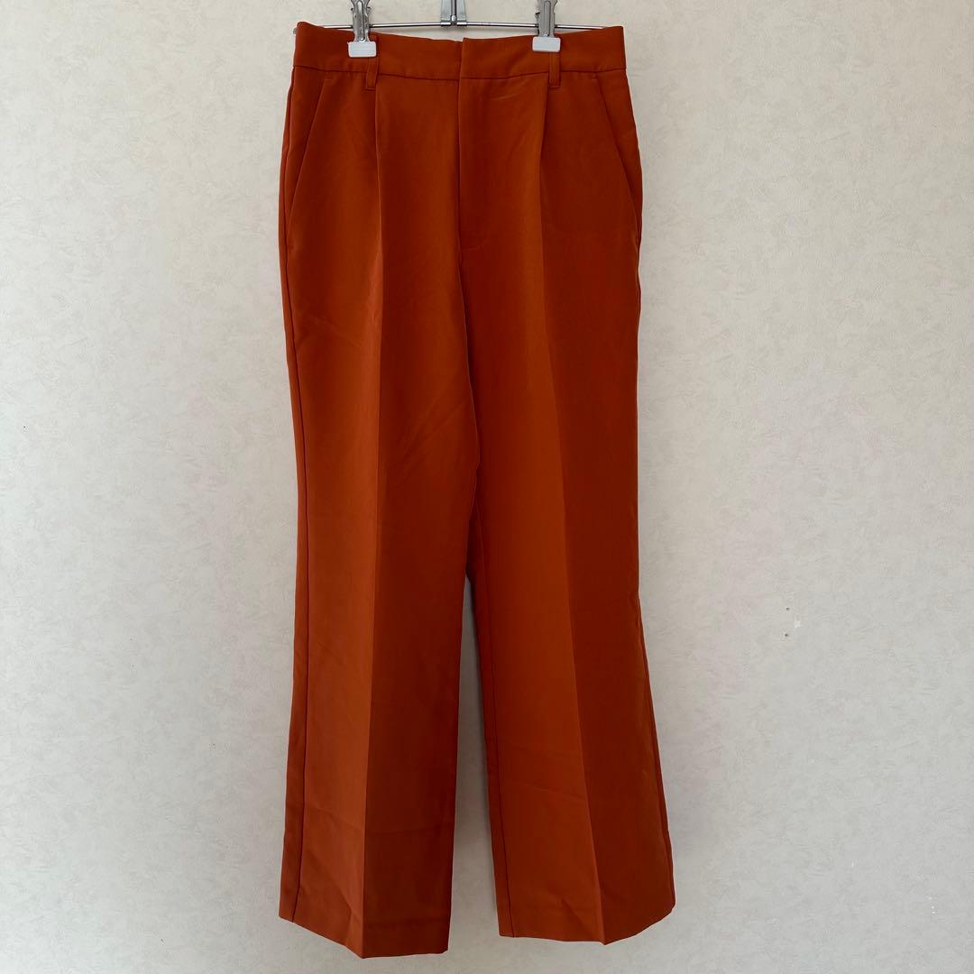 オレンジ ワイドレッグ カジュアルパンツ