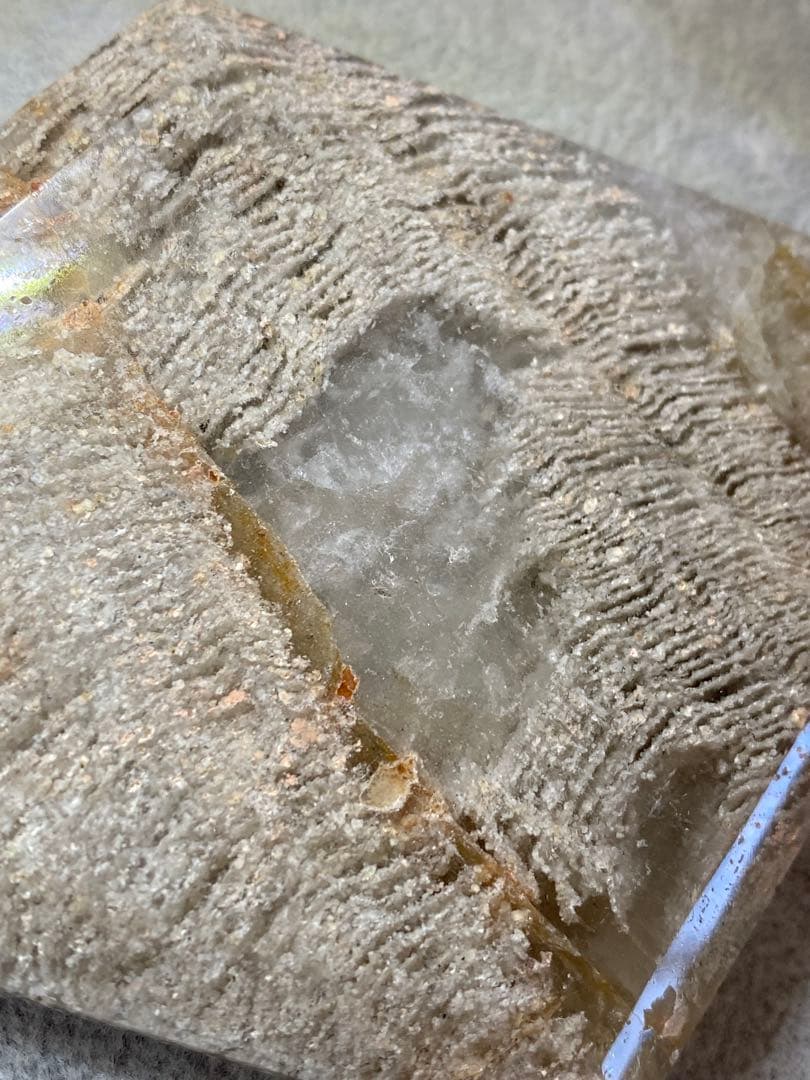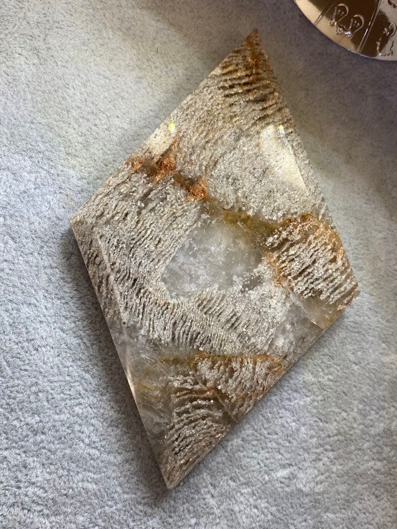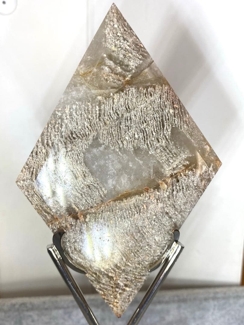 TZ469-15 菱形虹入り水晶千層ガーデンクォーツ台座セット天然石原石
