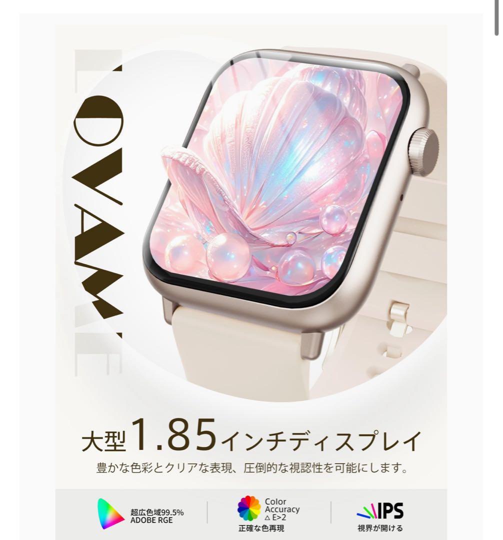 新品!新品 スマートウォッチ ゴールド 1.85インチ 防水 時計 スマホ