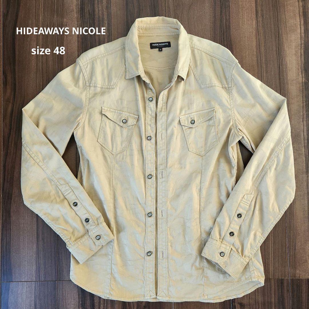 【HIDEAWAYS NICOLE】メンズ シャツ 長袖 迷彩柄 ベージュ