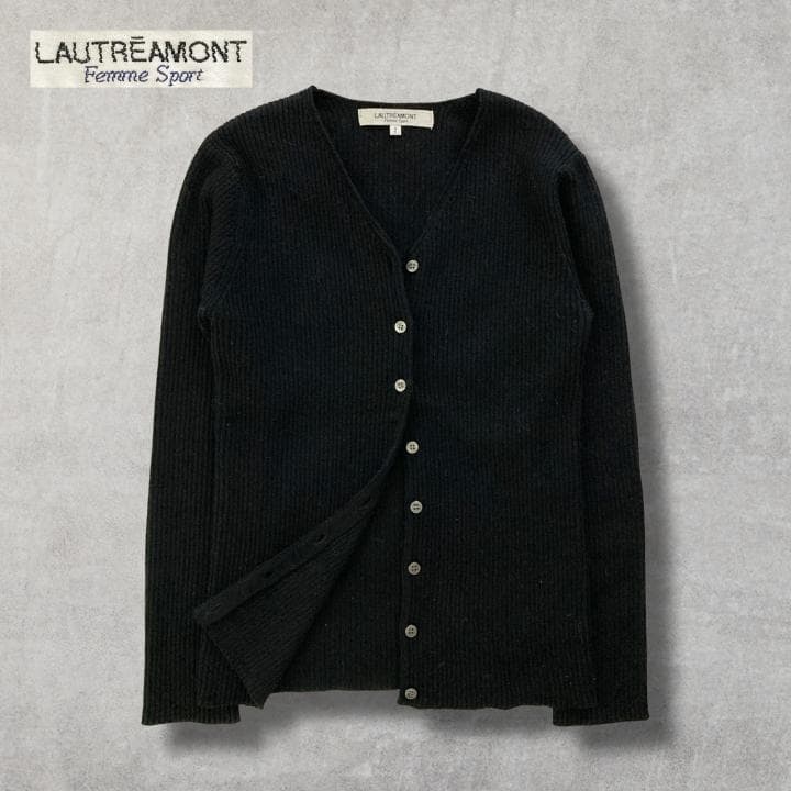 ロートレアモン カーディガン Vネック リブカーデ 無地 シンプル ブラック