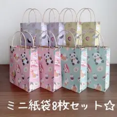 ハンドメイド☆ミニ紙袋8枚セット☆ふわふわシマエナガ&もふもふパンダ柄