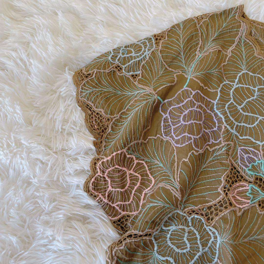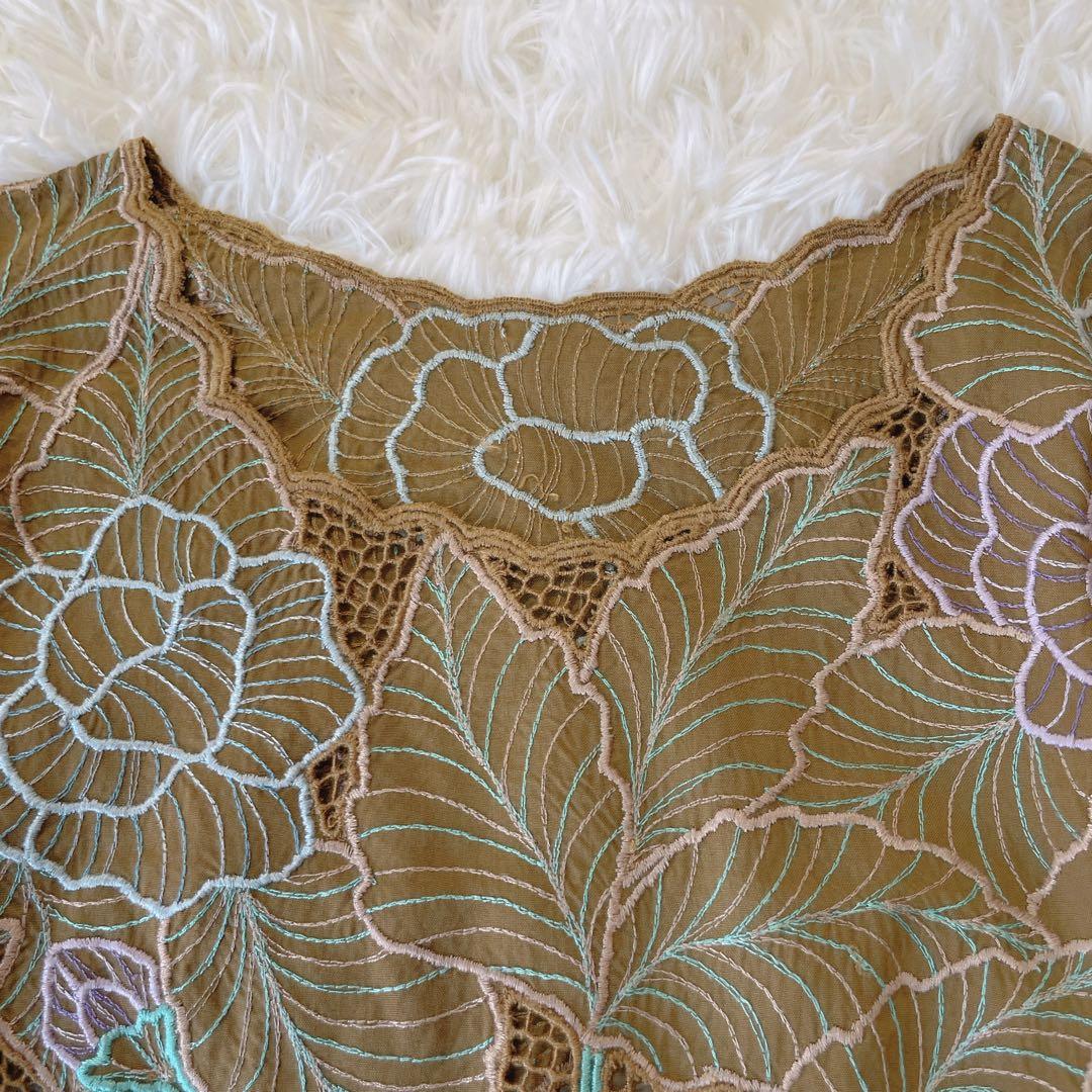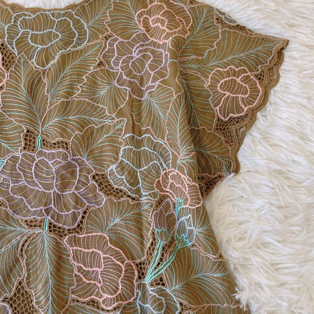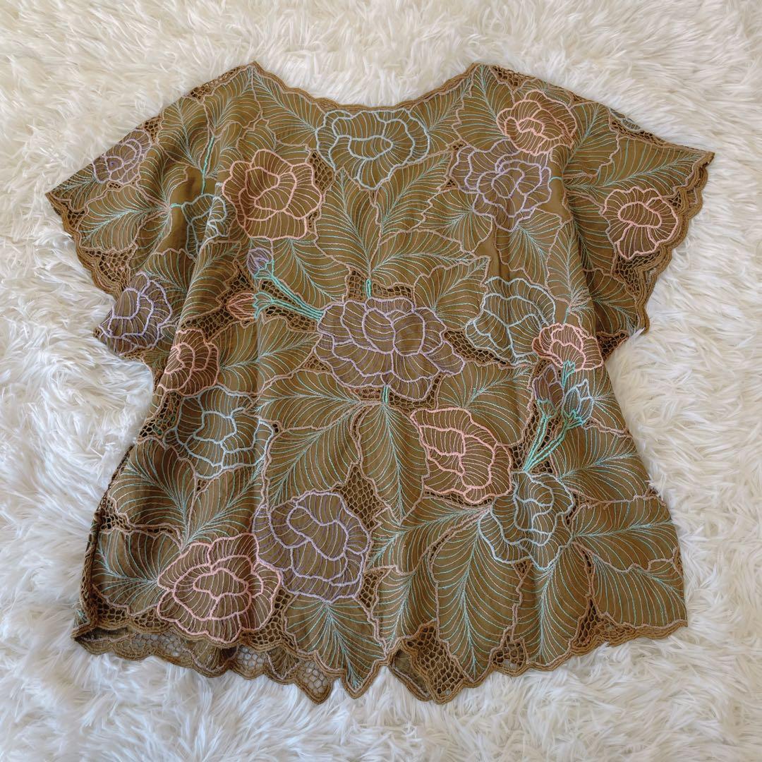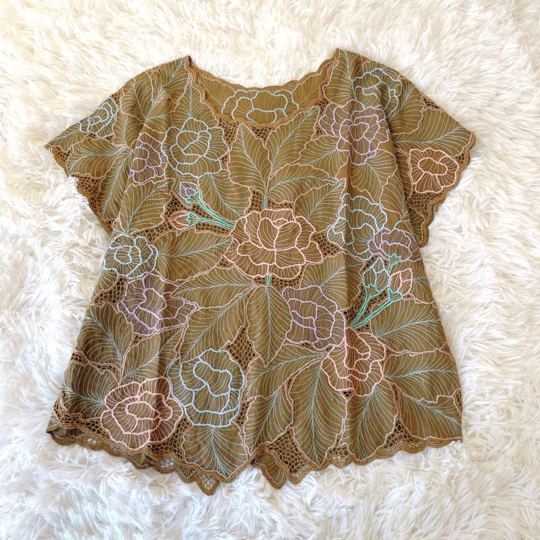 メモリーズオブユー レース刺繍ブラウス L相当 花柄 半袖 トップス