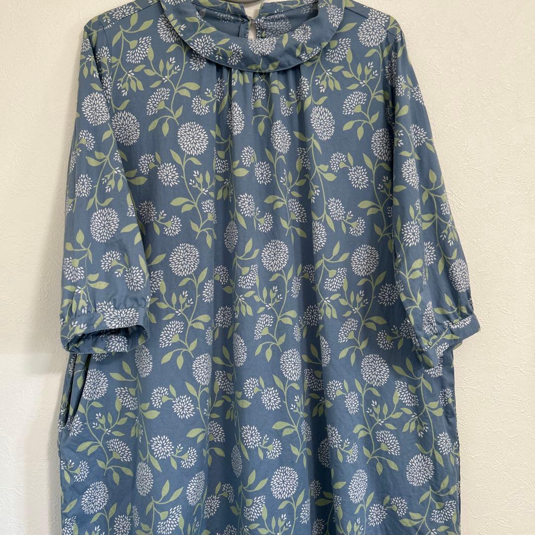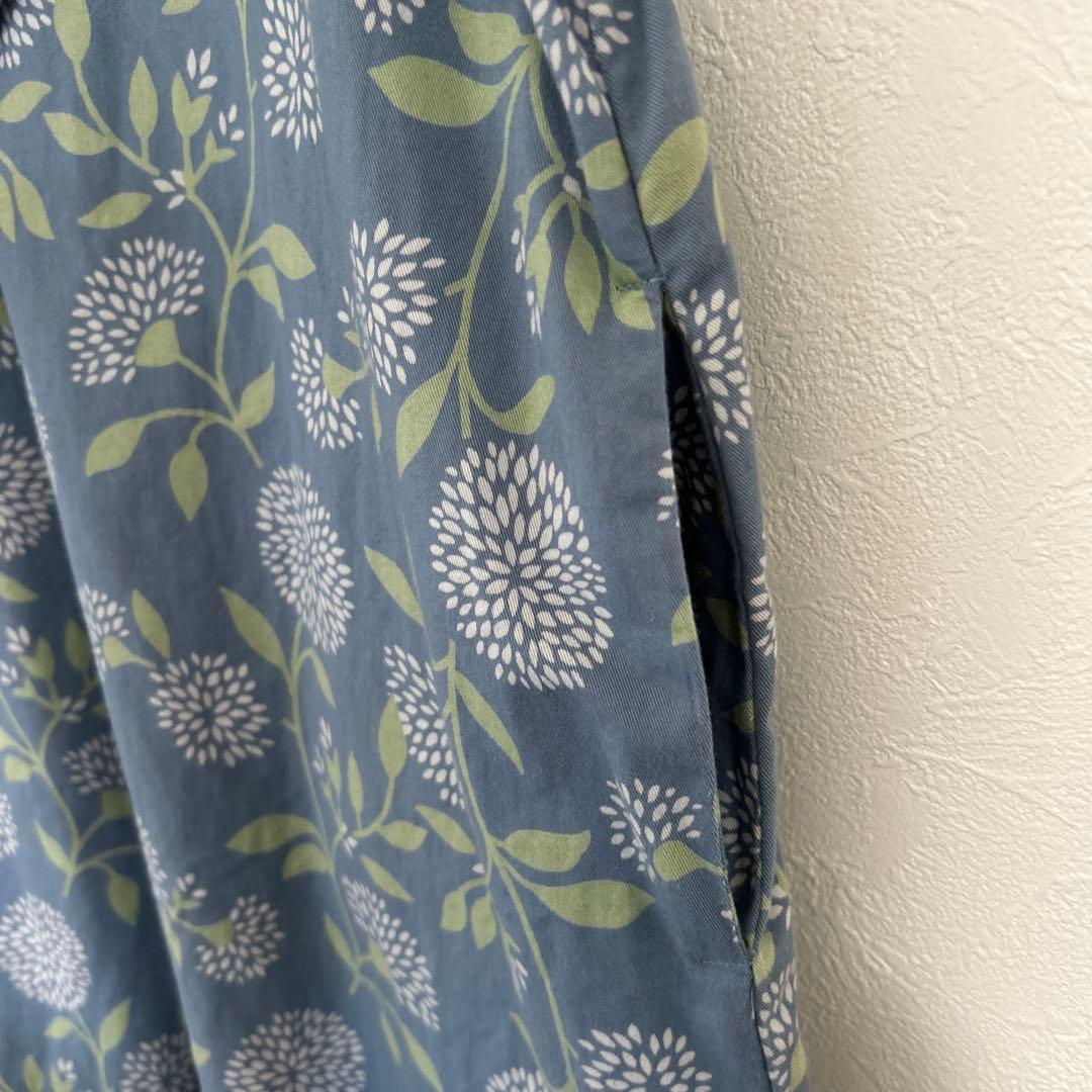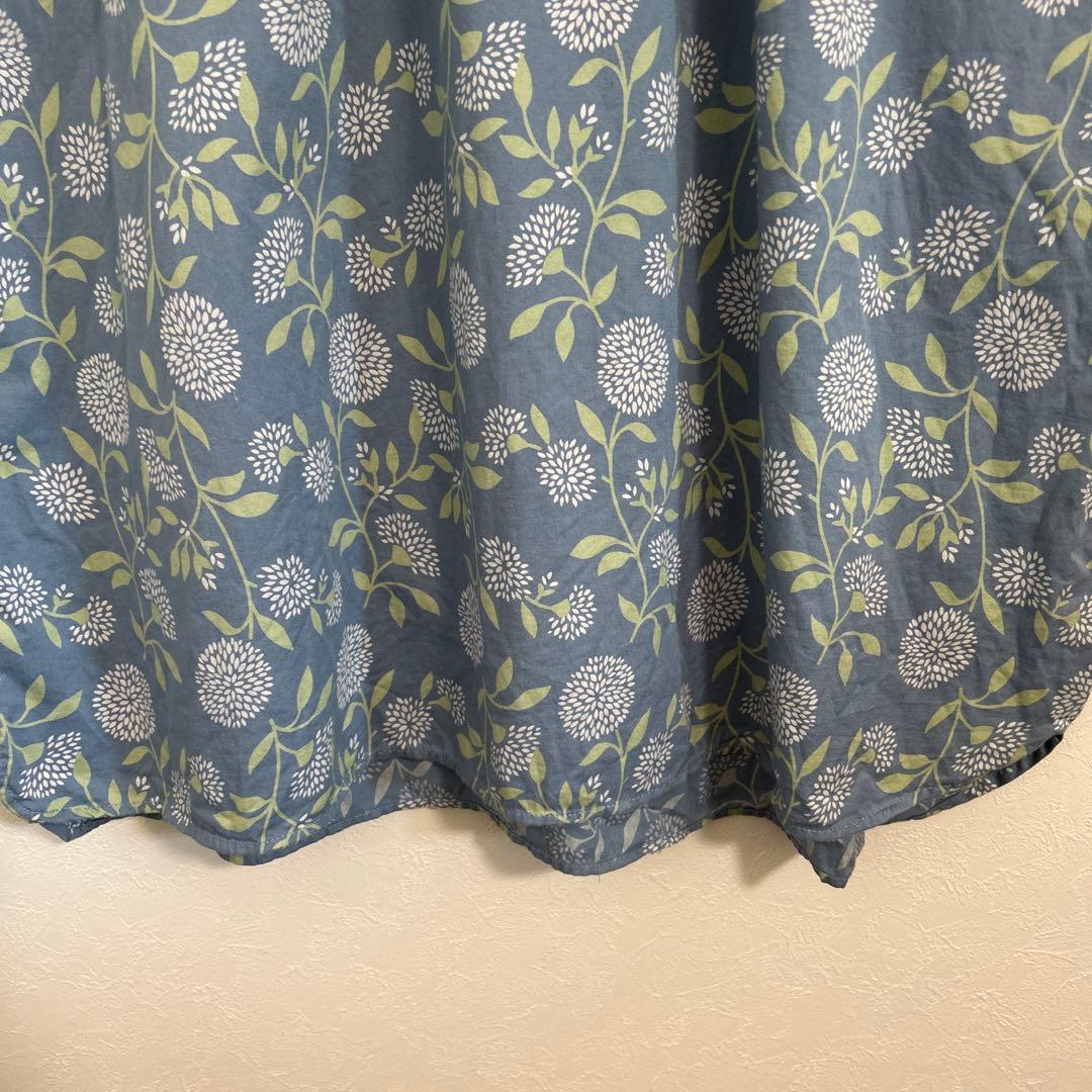 セルフサービス 青 花柄 長袖 シャツ 襟付き