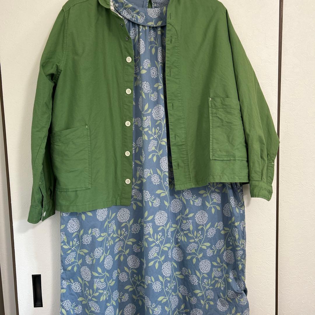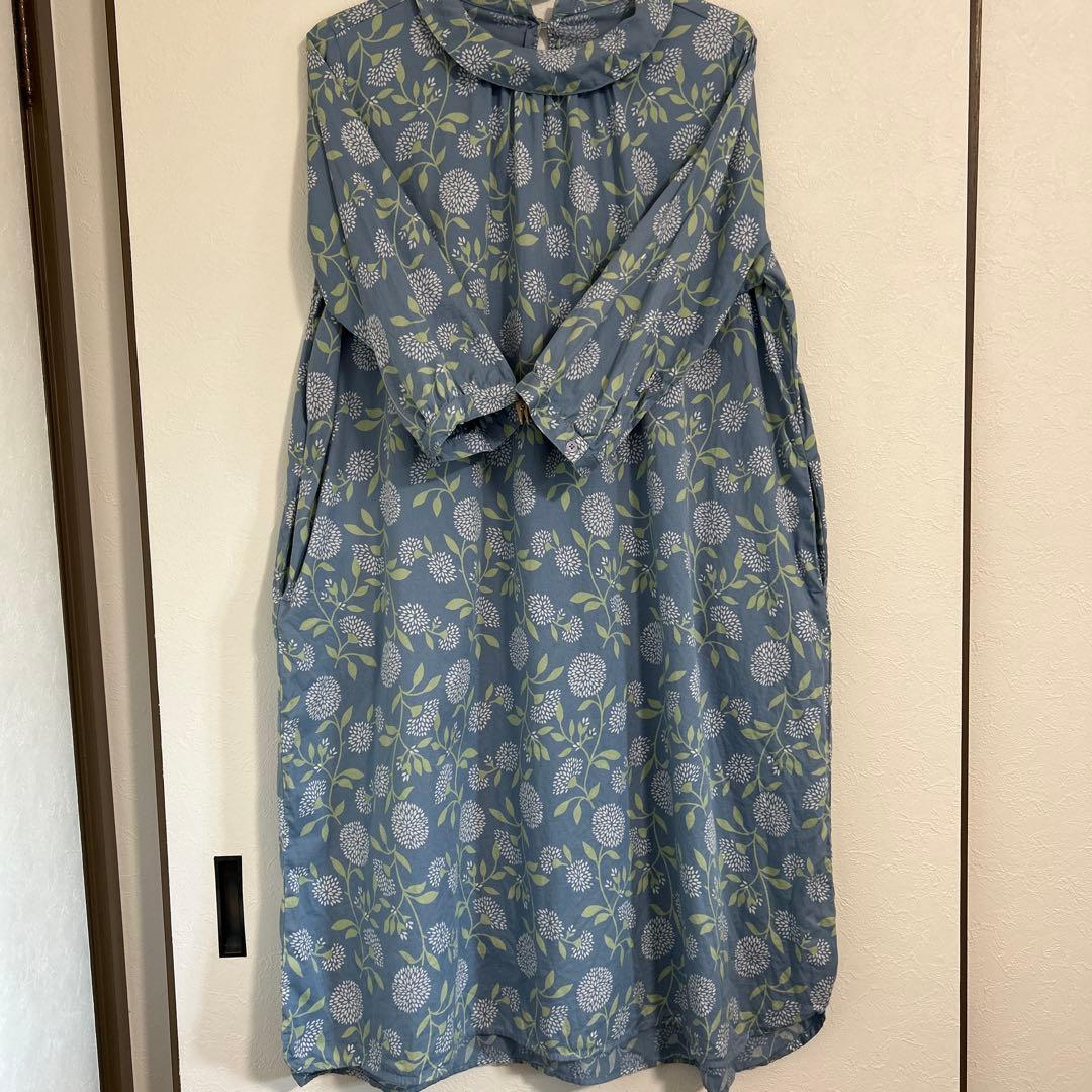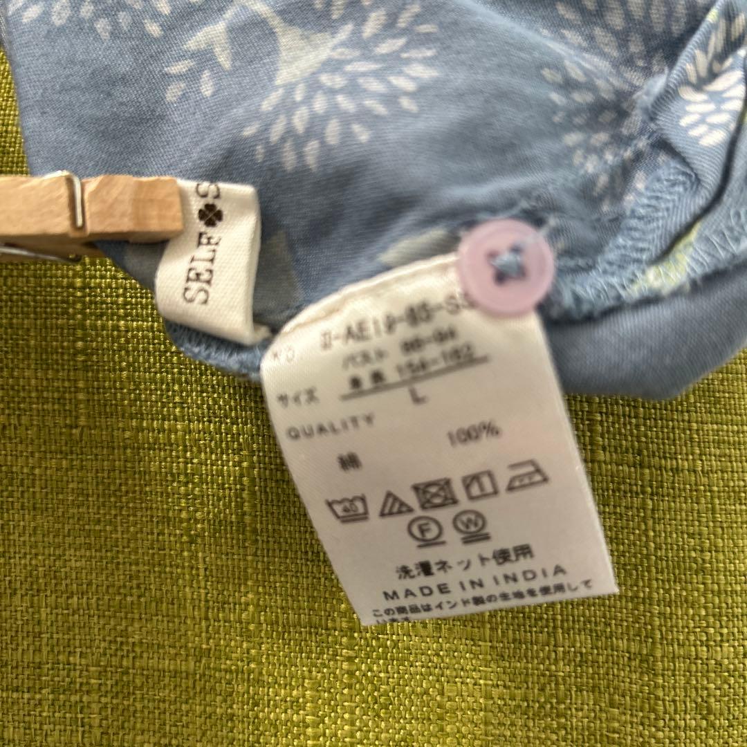 セルフサービス 青 花柄 長袖 シャツ 襟付き