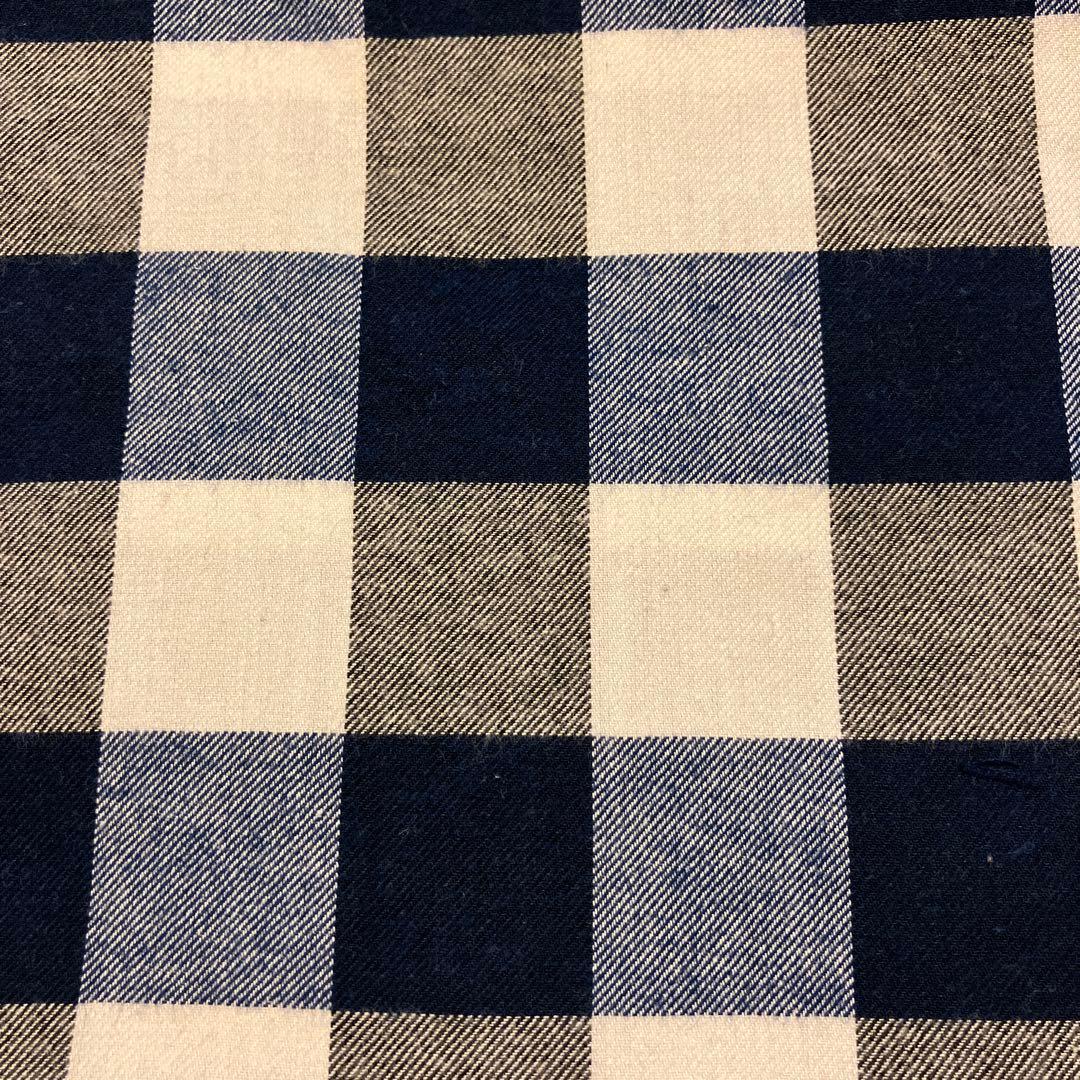 先染め生地(黒×オフ白×紺のブロックチェック柄ツイル)