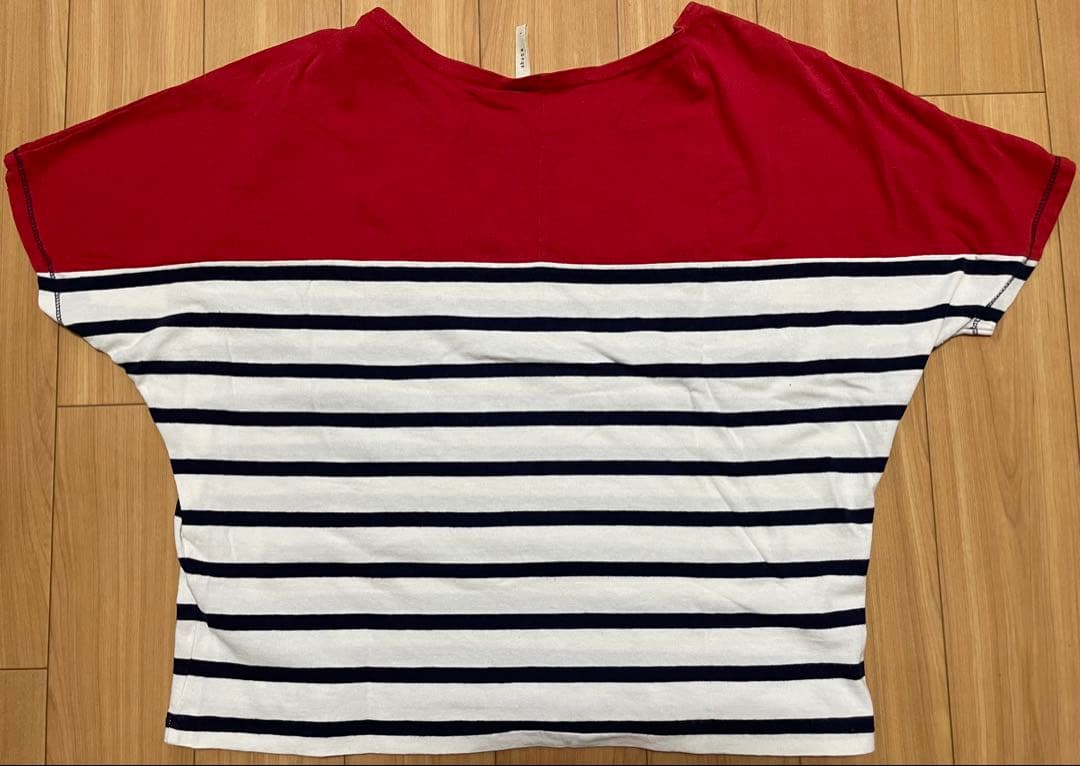 【shuca】赤/白ストライプ 半袖Tシャツ L