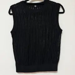 ユニクロ 黒 メッシュ編み ノースリーブニットベスト L