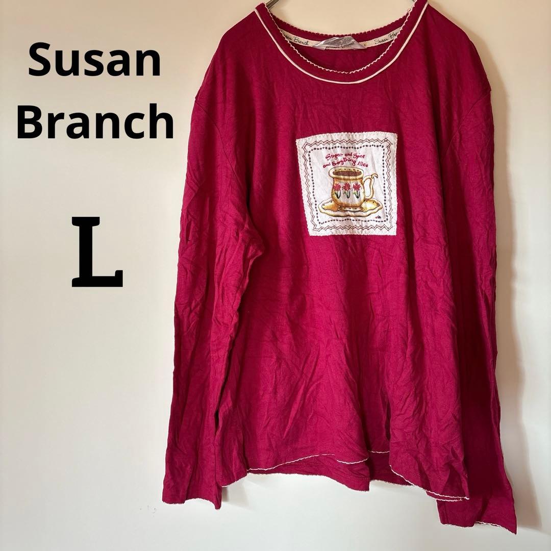 Susan Branch 【L】刺繍長袖Tシャツ ピンク