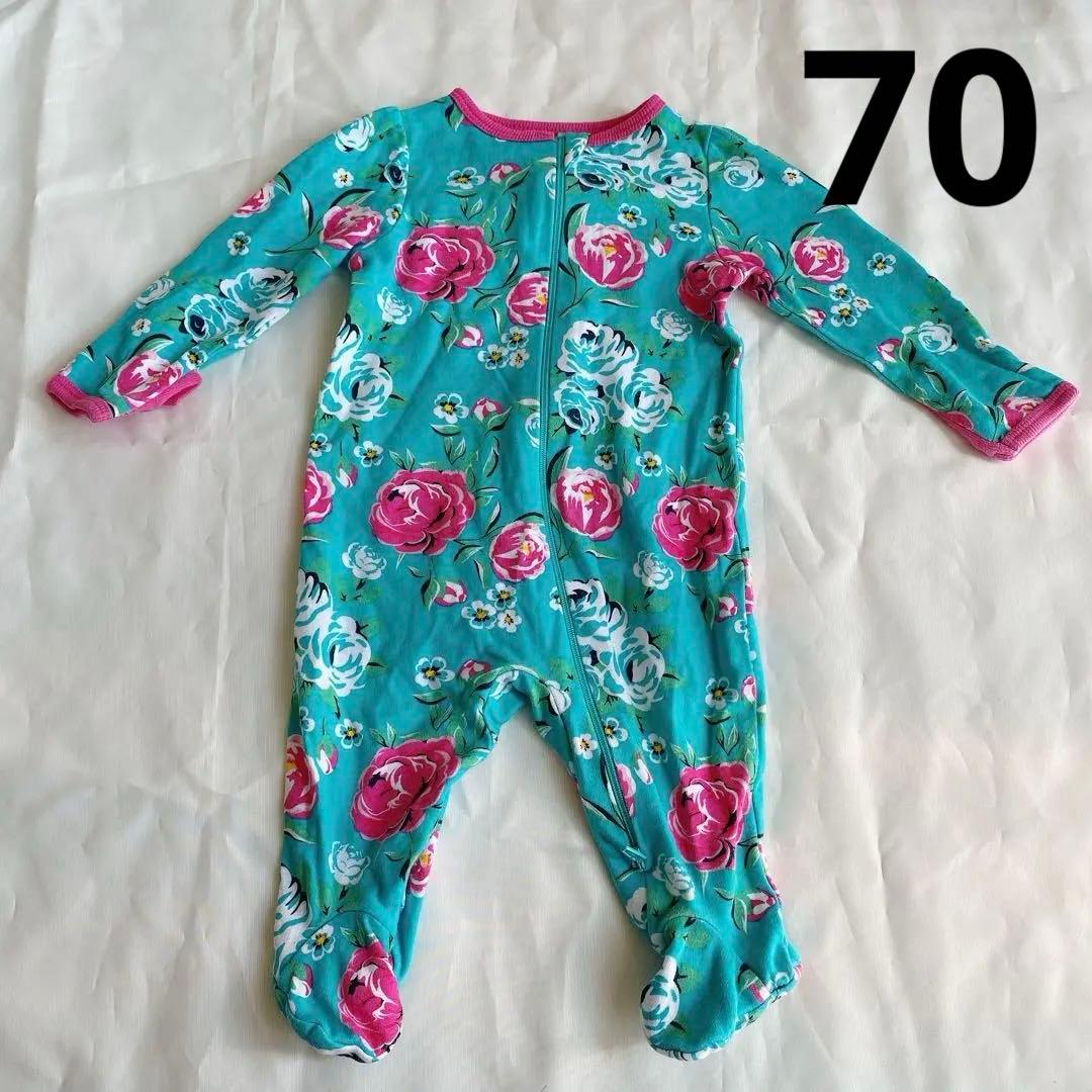 美品★wonder nation ロンパース 長袖 グリーン 花柄 70㎝