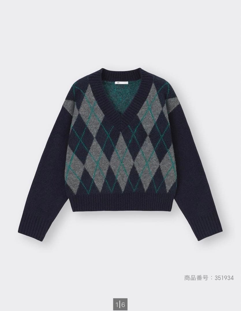 GU ジーユー パフィータッチアーガイルVネックショートセーター