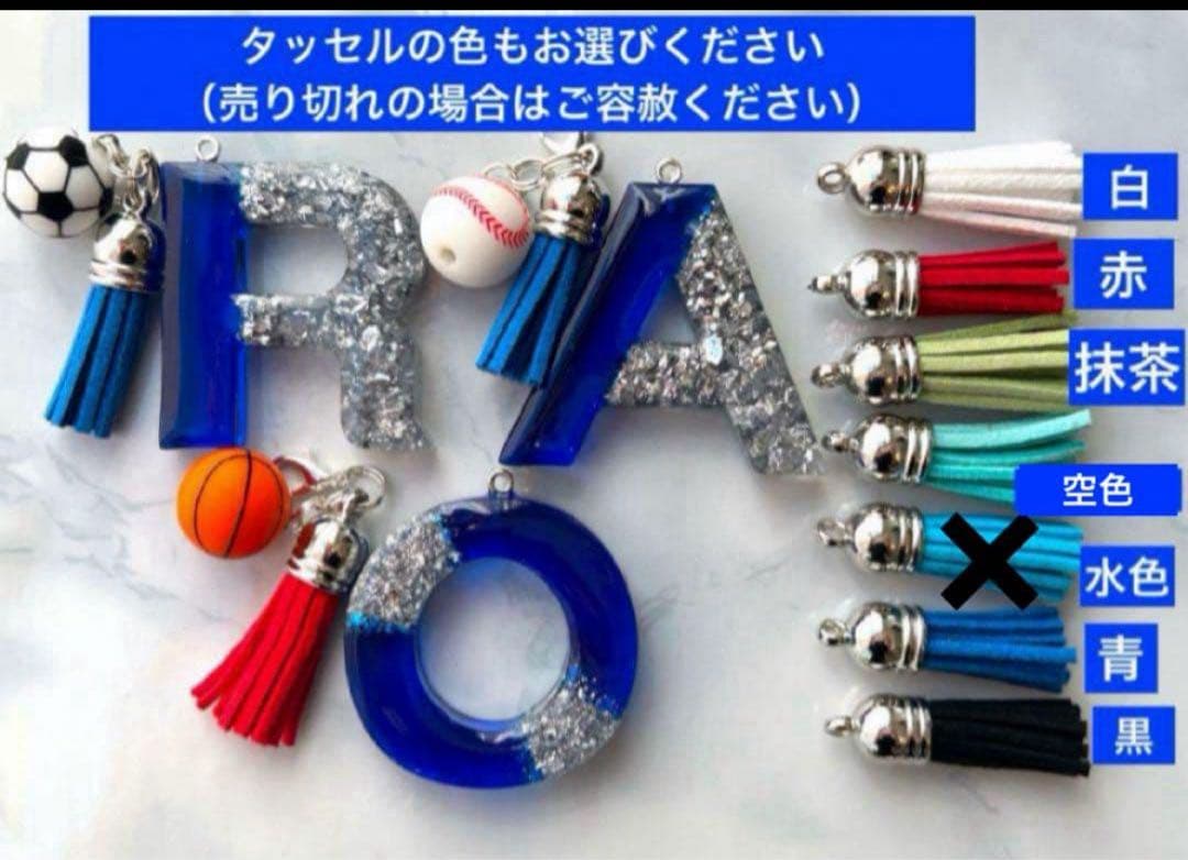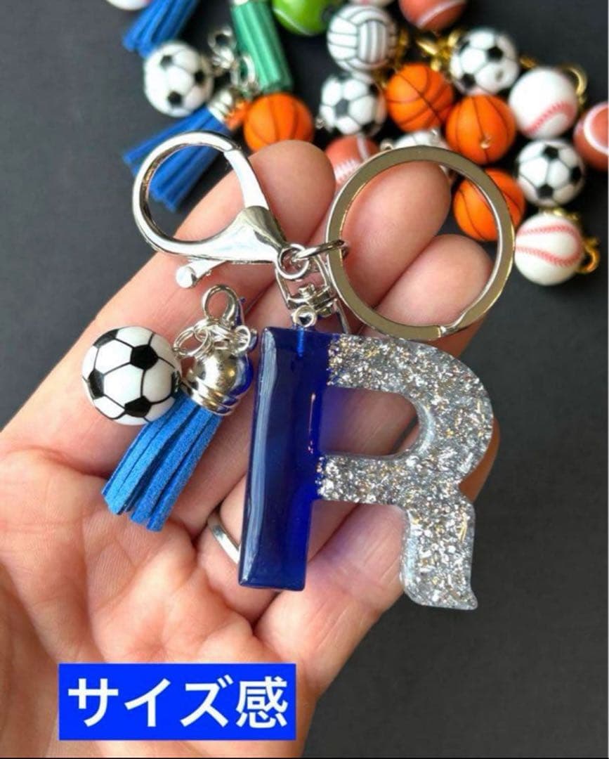 R イニシャルキーホルダー 青&銀 サッカー ラグビー バスケットボール テニス