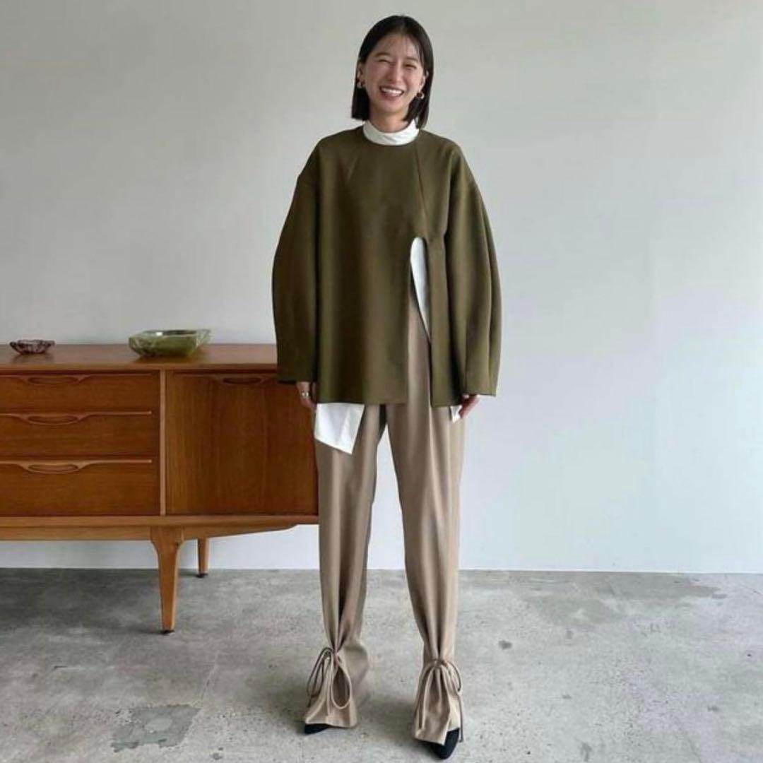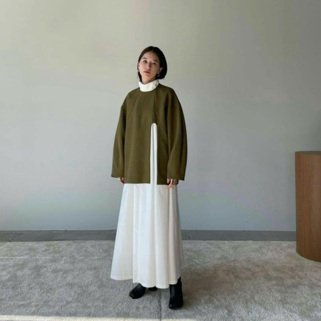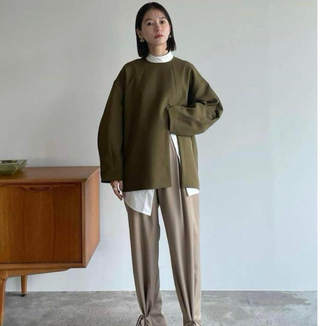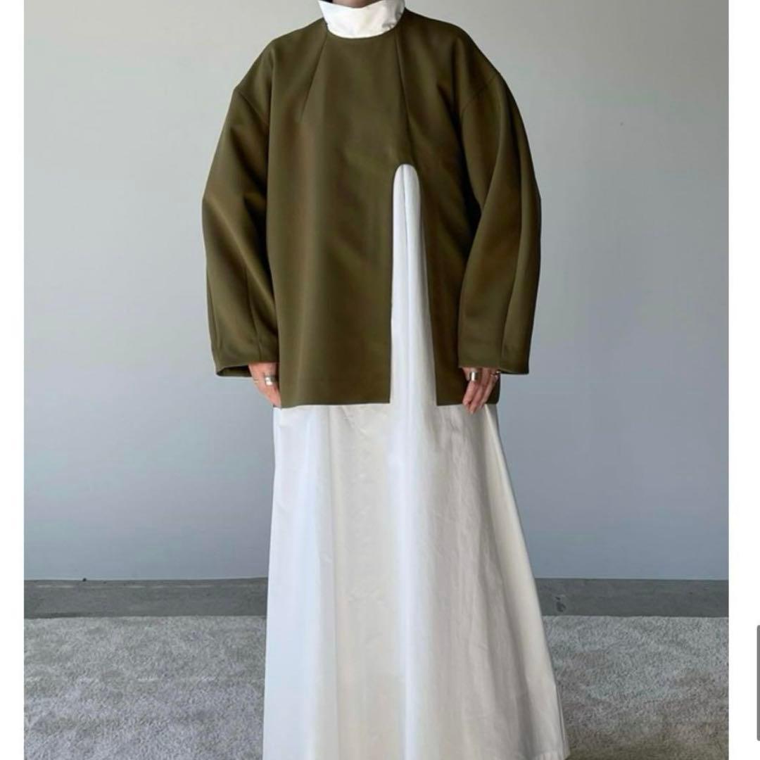【美品】ARCH CUT DOUBLE CLOTH TOPS-khaki