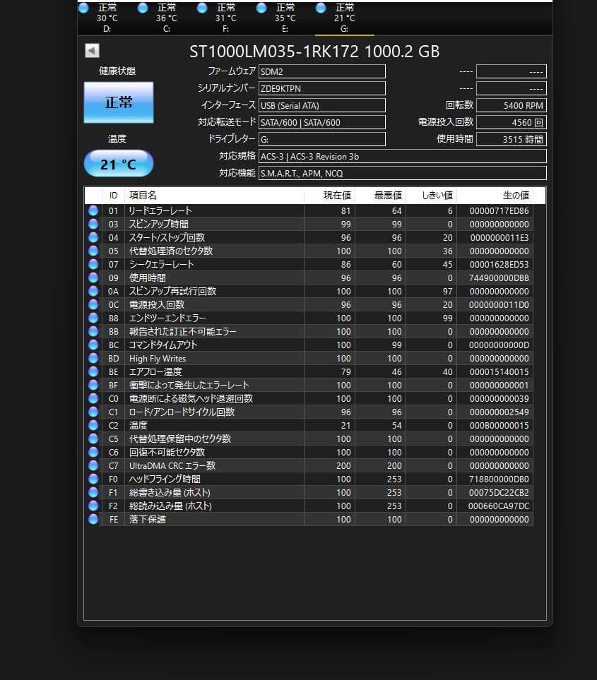 (使用3515h)SEAGATE 2.5HDD 1TB ST1000LM035