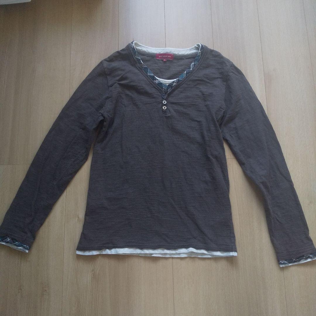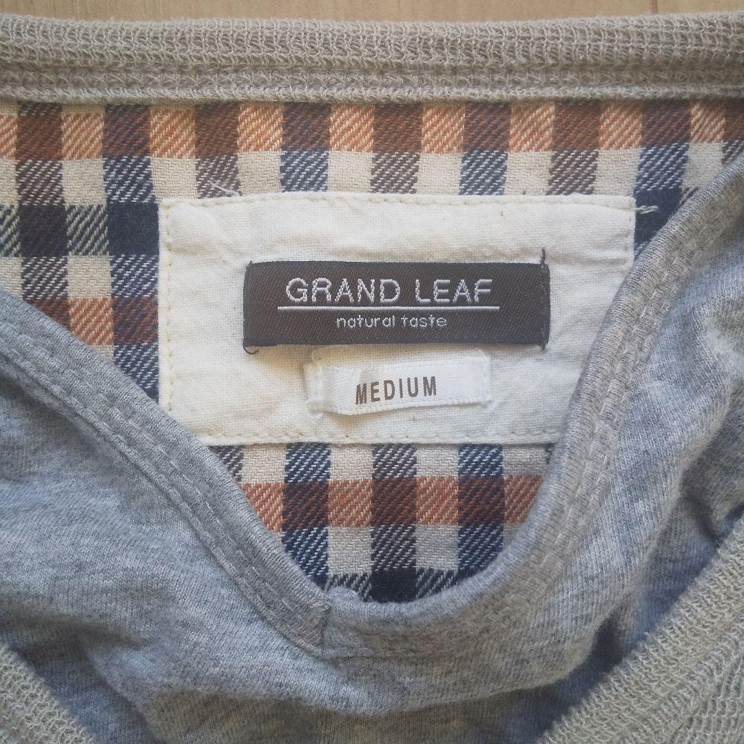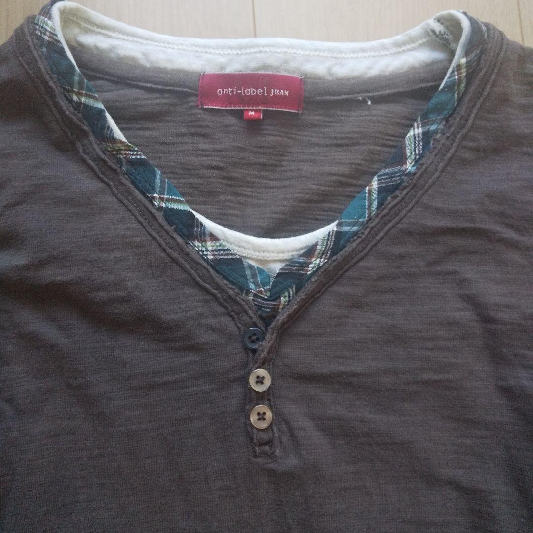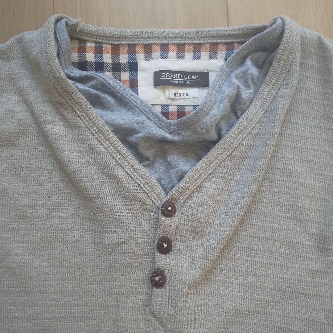 中古メンズMサイズブラウン&ライトグレー重ね着風レイヤードトップス2枚まとめ売り
