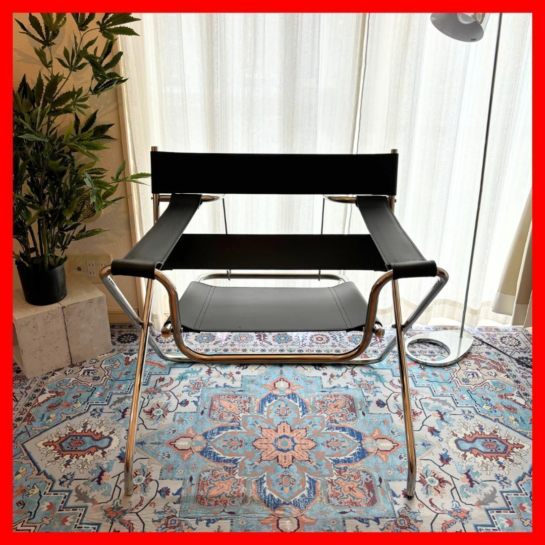リプロダクト ワシリーチェア 折りたたみ式 デザイナーズチェア レザー ブラック