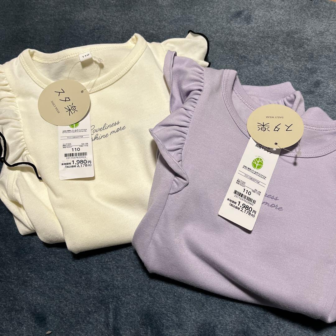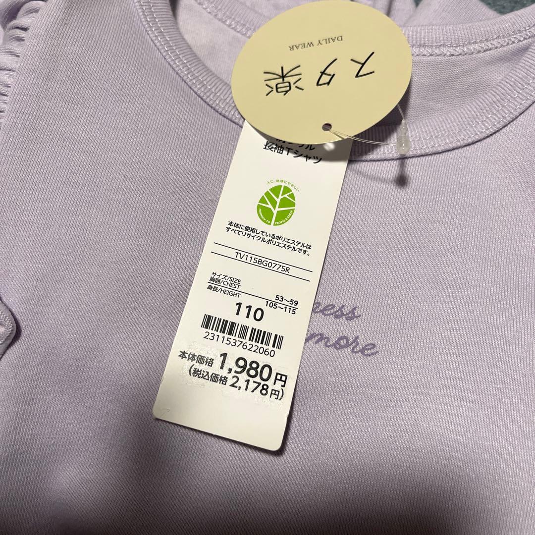 トップバリュー長袖カットソー 110サイズ 白 ラベンダー フリル付き