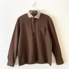 ☆【プレイボーイ】ポロシャツ 刺繍ロゴ 綿混 ハーフボタン 横スリット 長袖 M