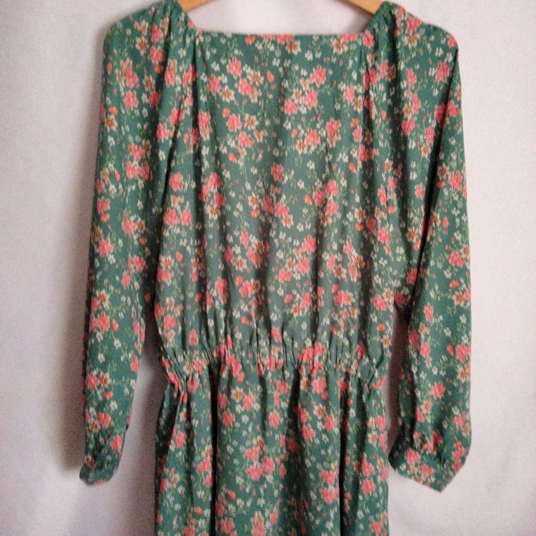 花柄ロングワンピース(緑色)長袖 フリーサイズ ウエストゴム