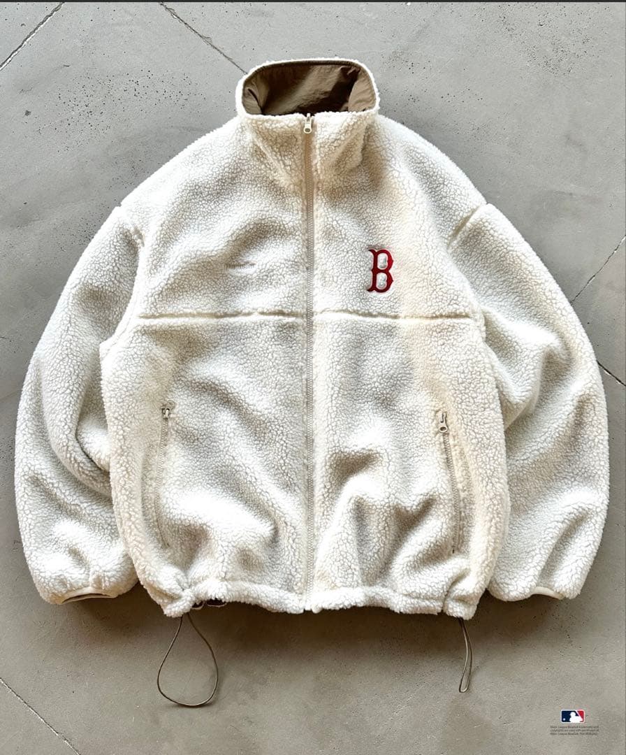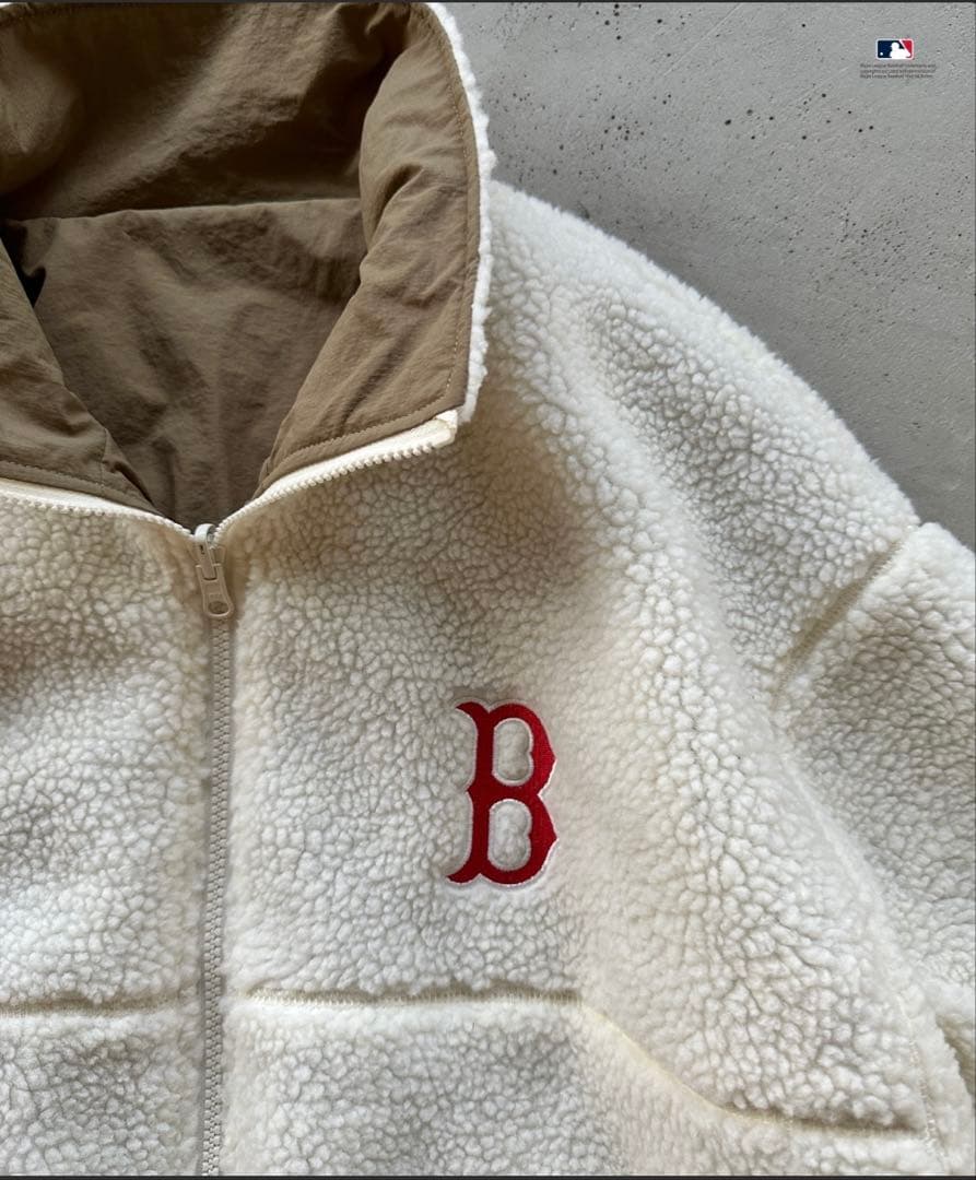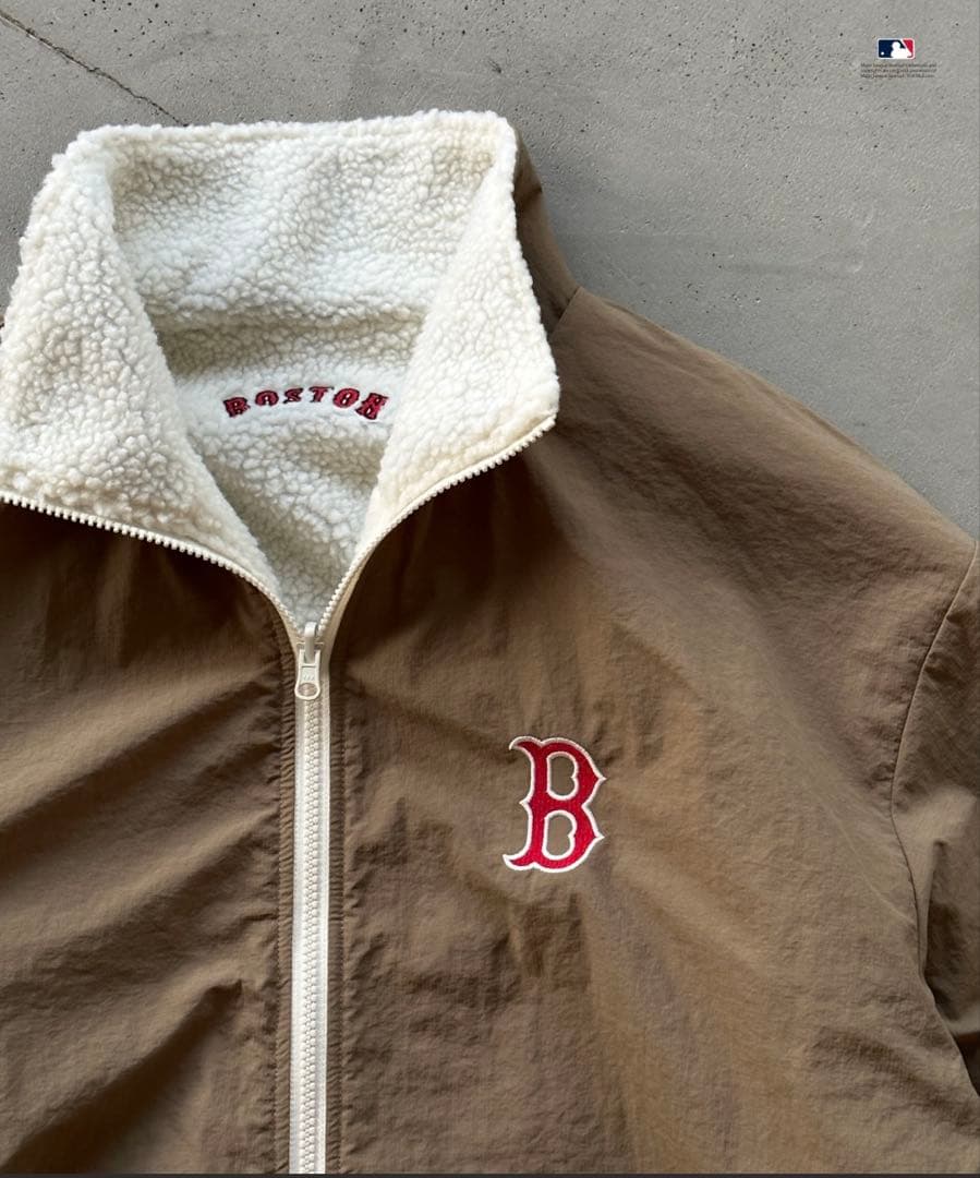 Perushu × MLB コラボスタンドネックリバーシブルナイロンボアブルゾン