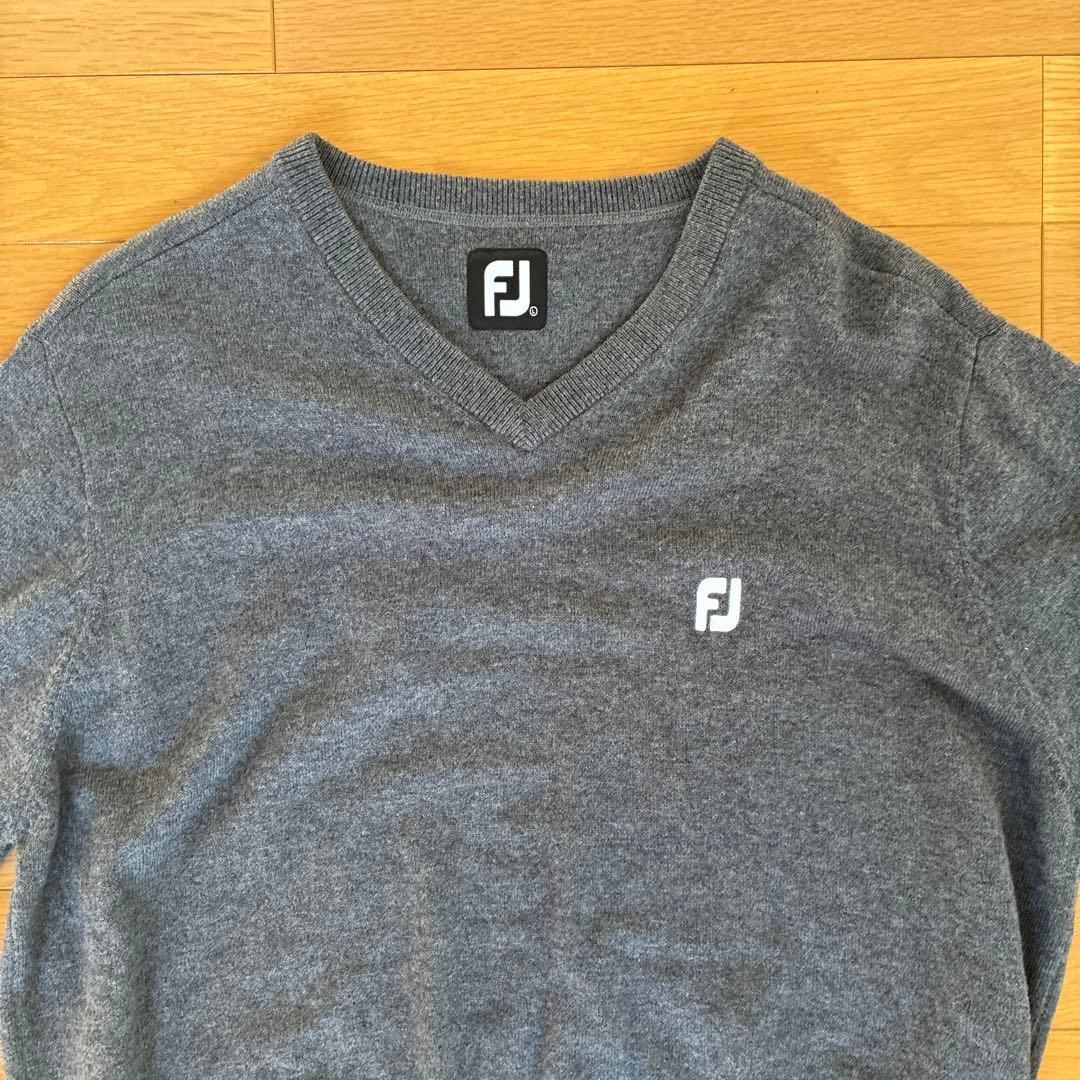 FJ グレー Vネックセーター Lサイズ ウール100%