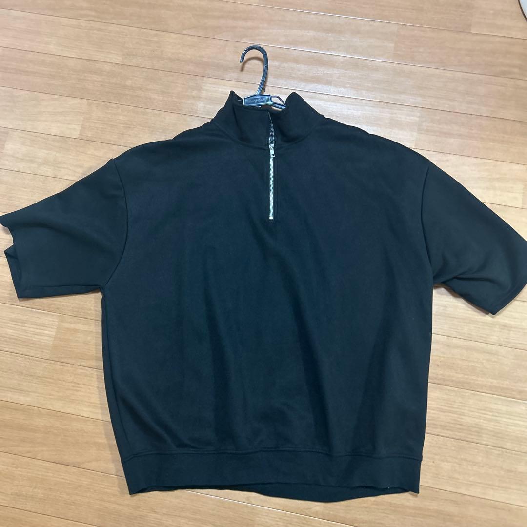 黒 半袖ジップアップトップス Lサイズ