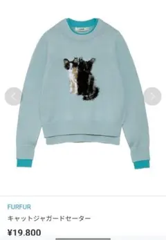 ファーファー 猫 キャット ジャガード セーター ニット ブルー トップス