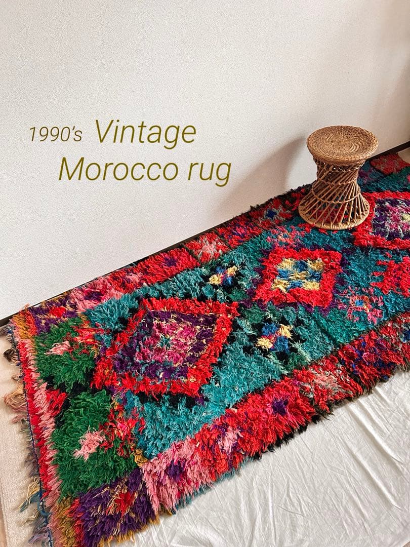 モロッコラグボシャルウィットヴィンテージラグ大判 ターコイズ レッド