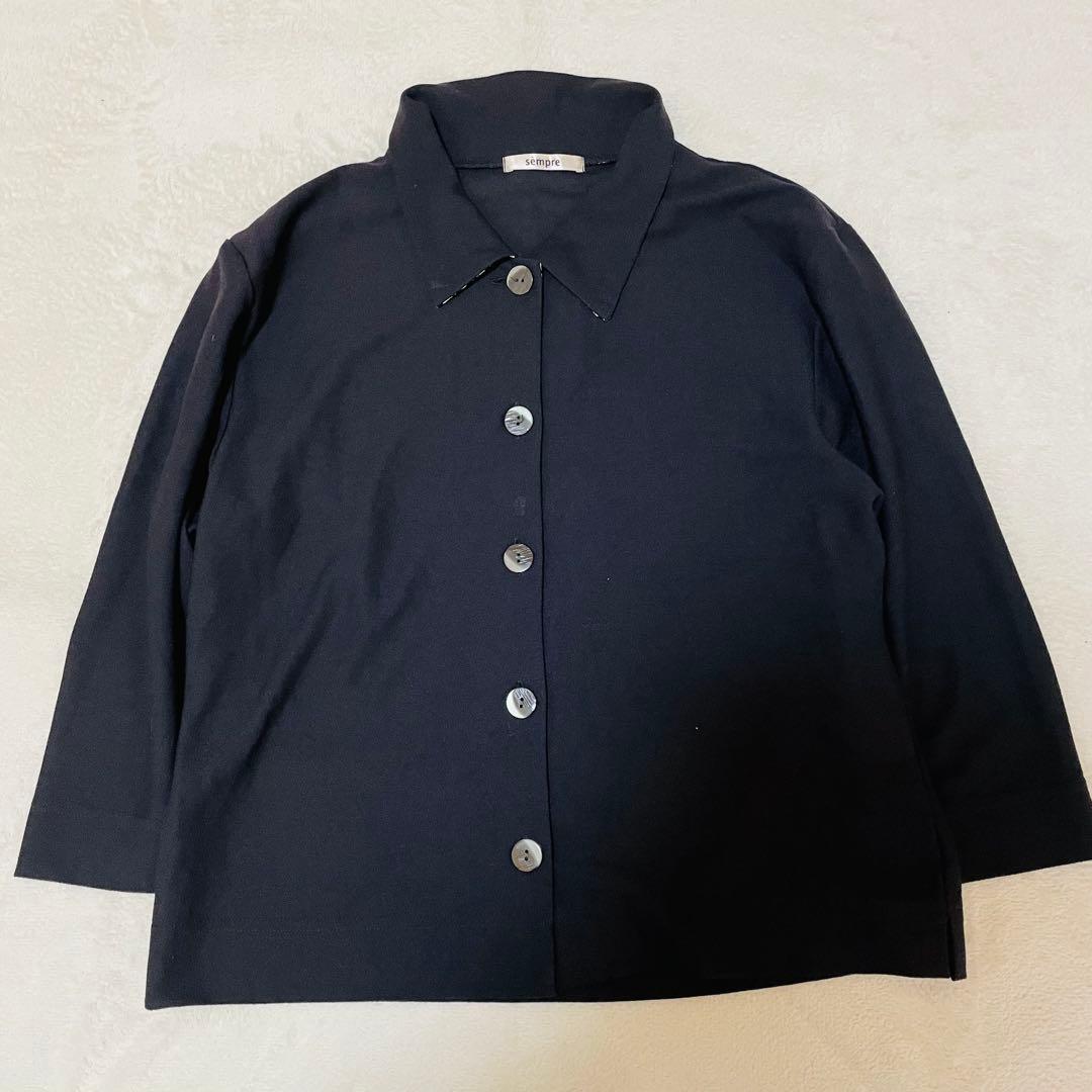 センプレ sempreカーディガン風トップス ブラック M 日本製 七分袖