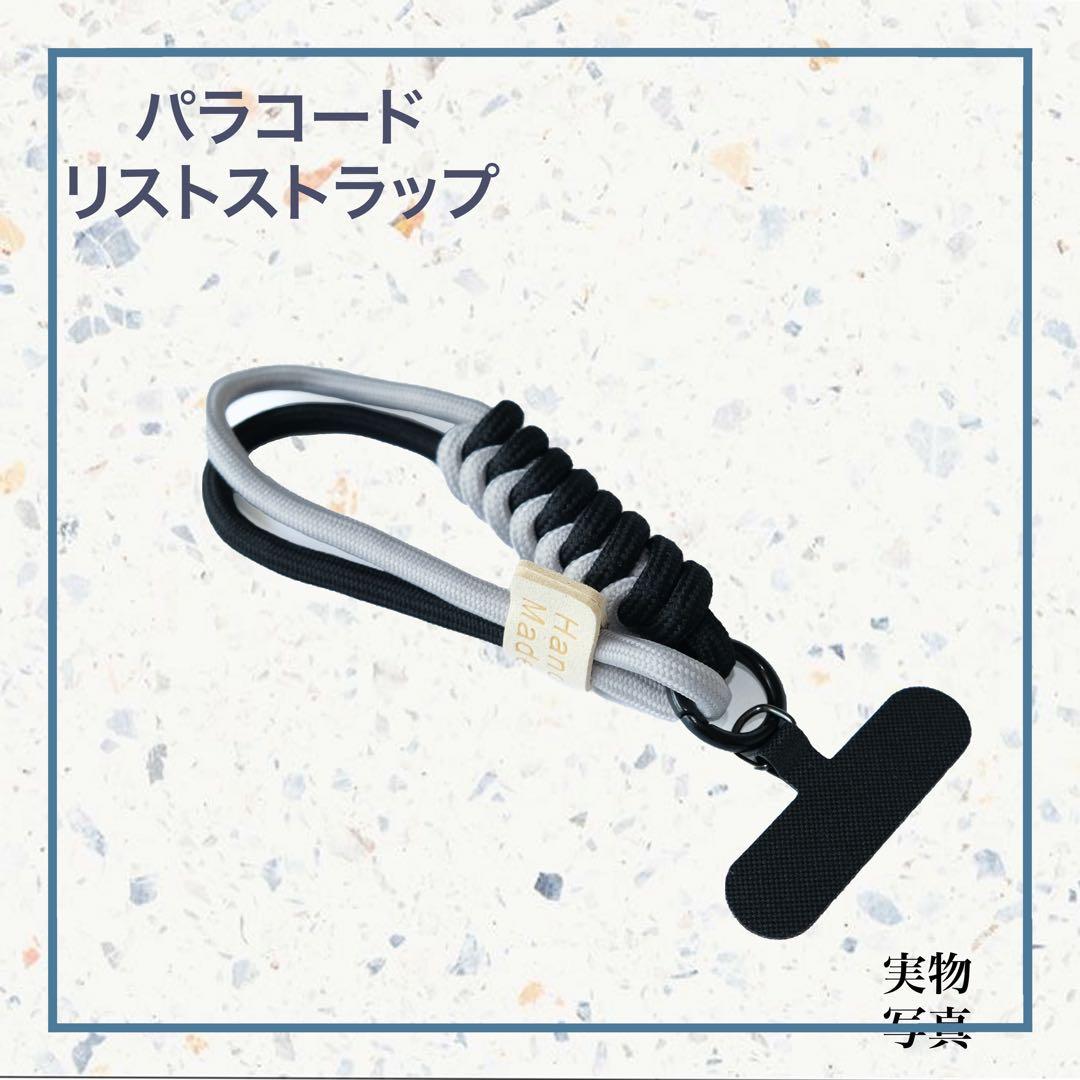 パラコードリストストラップ ハンドストラップ 落下防止 軽量 黒グレー