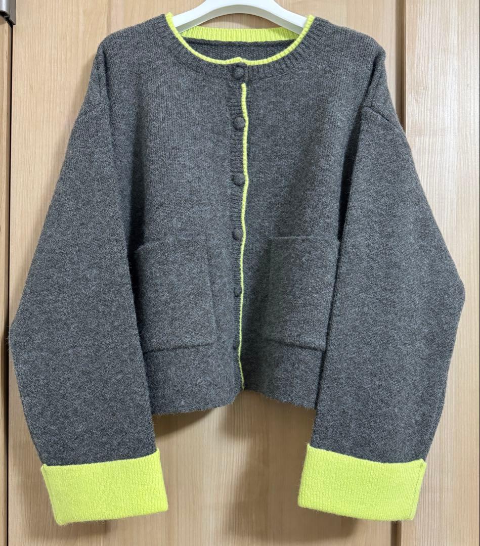 VENCEEXCHANGE アルパカタッチ配色カーディガン チャコール
