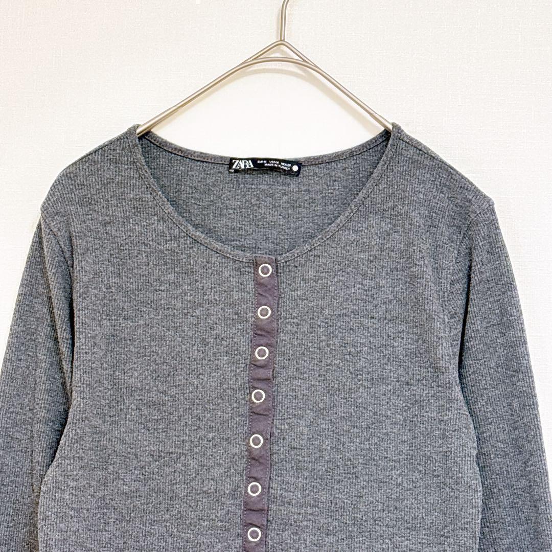 ザラ ニット M 長袖 グレー 薄手 シンプル 無地 カジュアル 春 秋