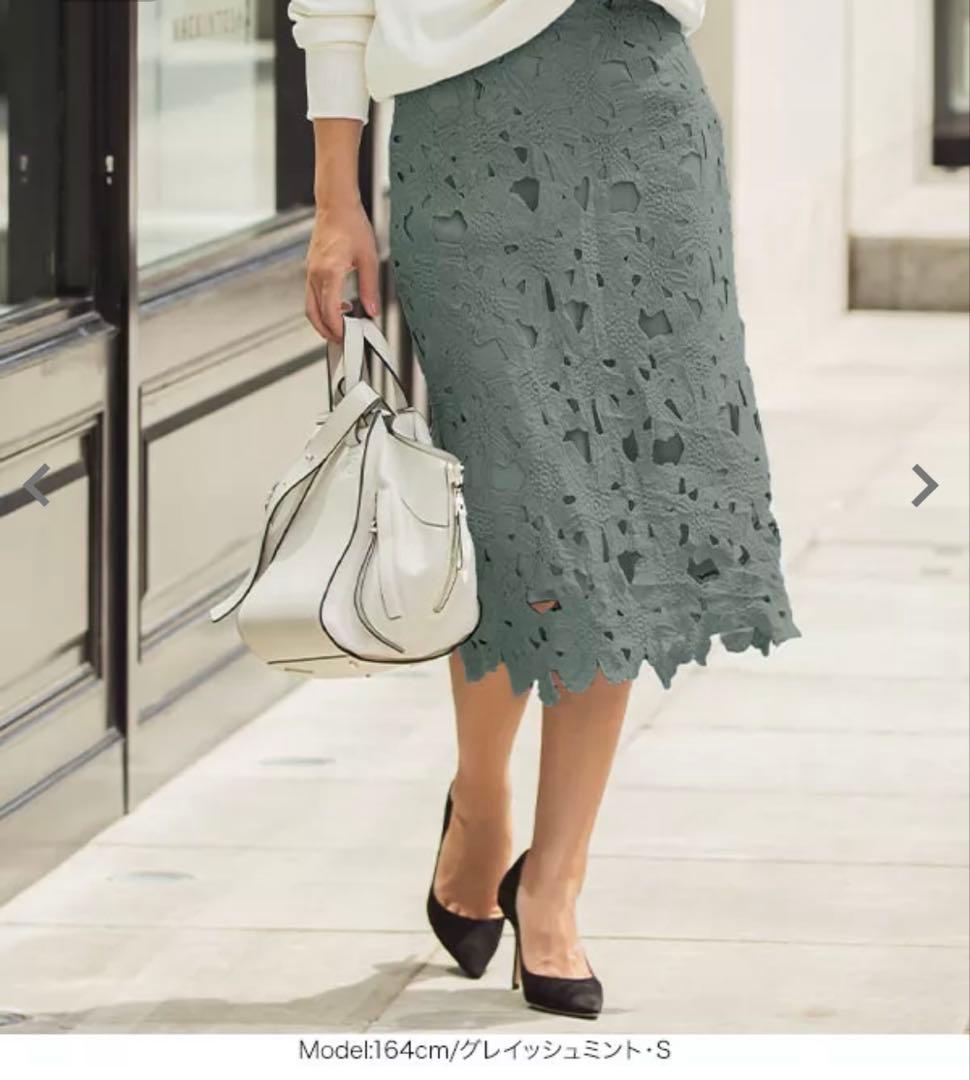 レースロングタイトスカートM 色グレイッシュミント 阿部あゆみさんコラボ