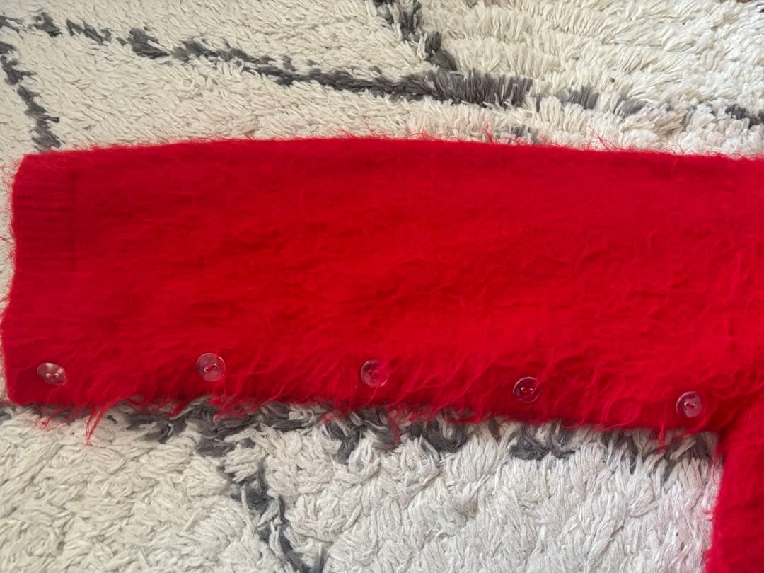 赤 クロップド丈 ベルスリーブ ニット