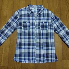 【美品】NANO UNIVERSE 長袖ネルシャツ 7分丈 青系チェック