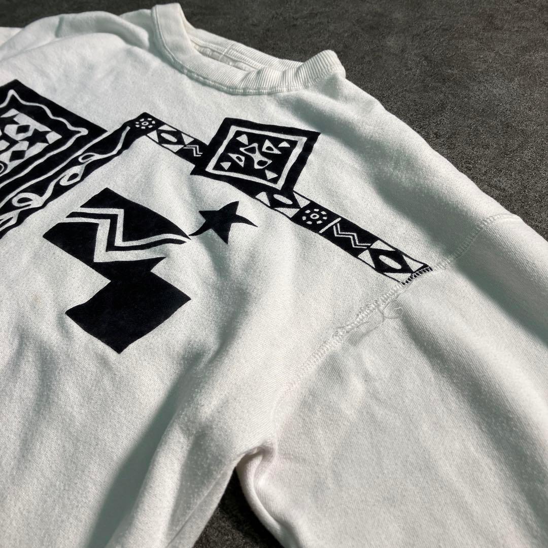 6as5ネイティブ柄 スウェット 白 トレーナー 古着