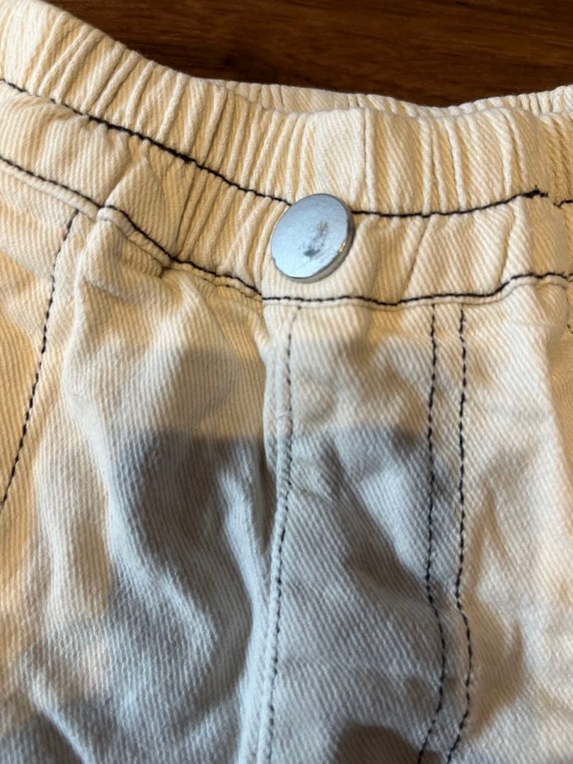 クリーム色ロールアップパンツ R刺繍付き デニム 95cm