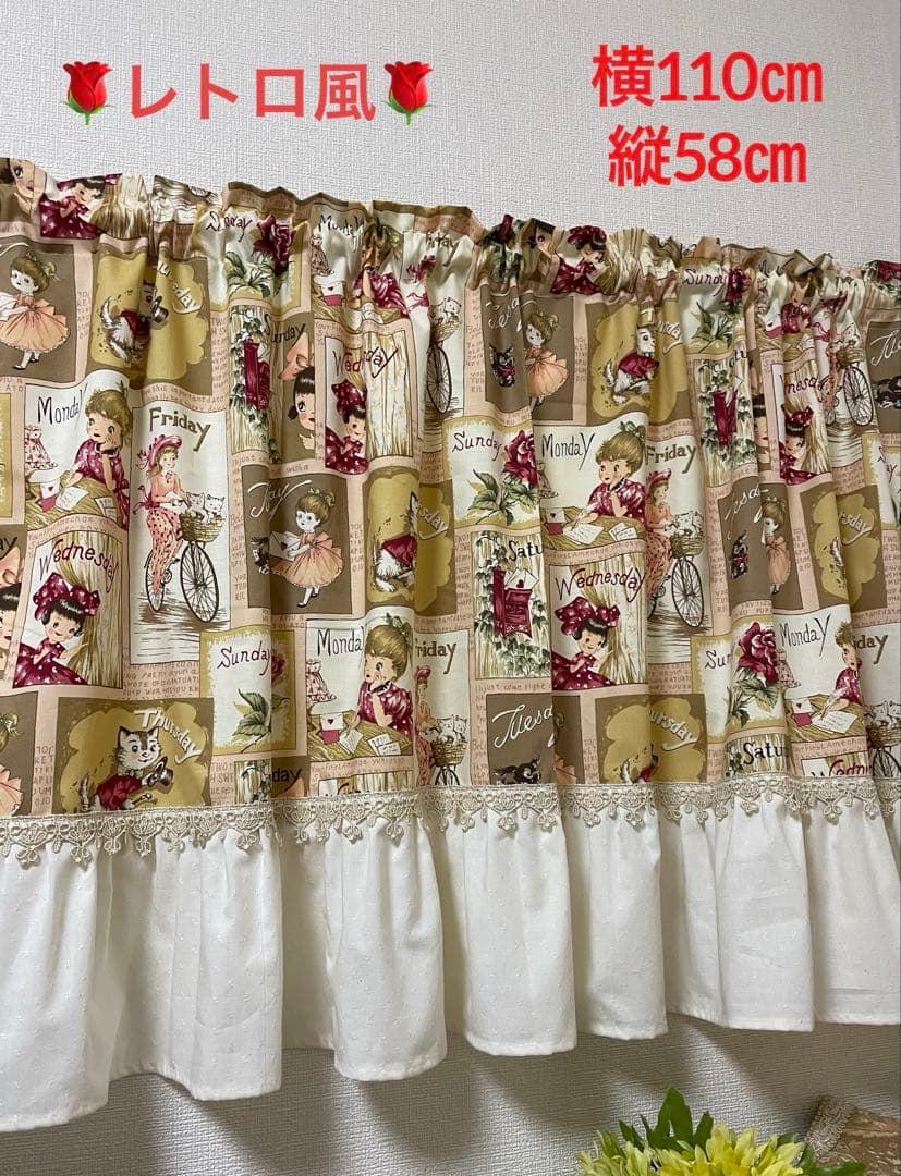 ☆フリルカフェカーテン・RETRO WORLD by YUWA・コットン生地☆