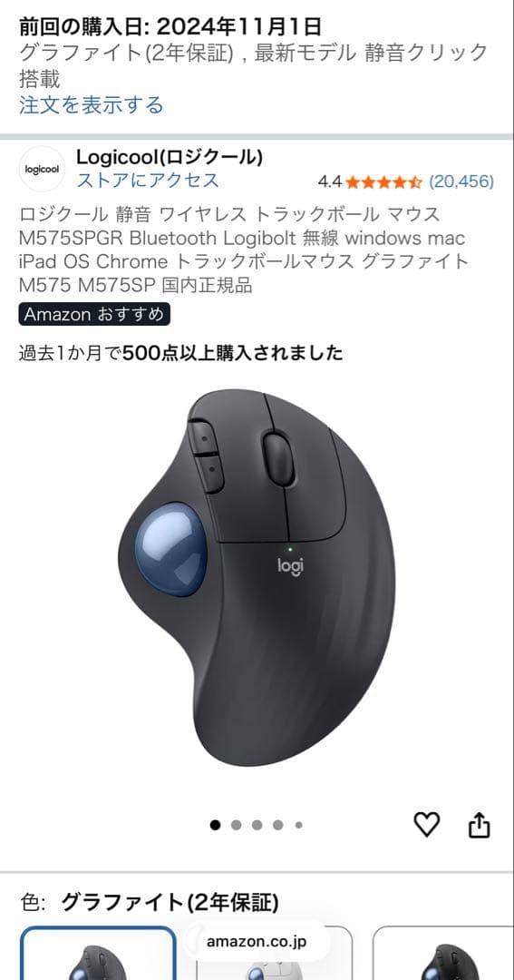 【美品】ロジクール トラックボールマウス(M575SP グラファイト)