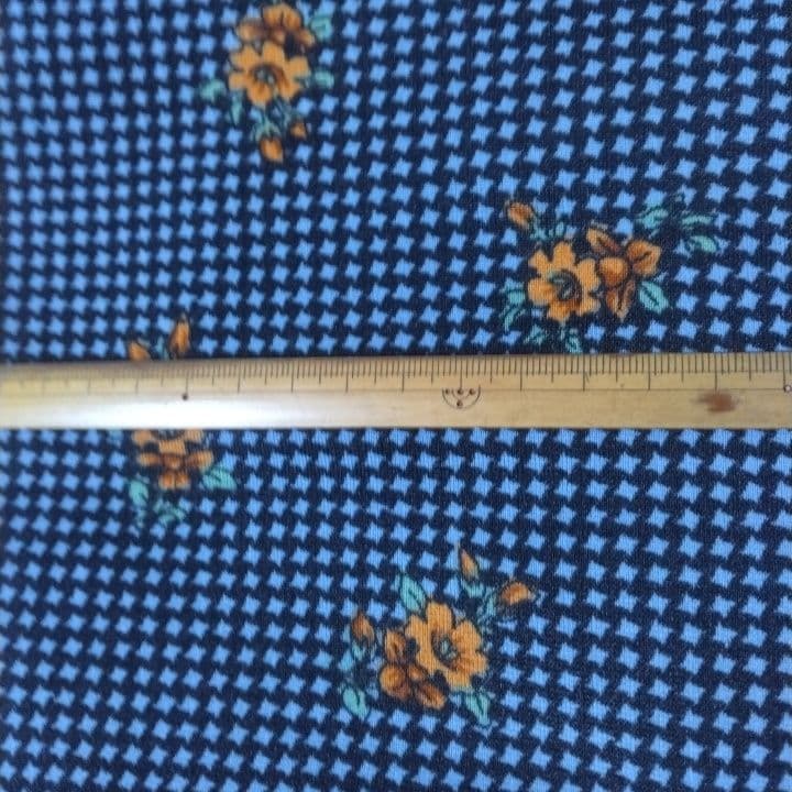 ハギレ 千鳥花柄 140㎝×1m ブラック ・ブルー