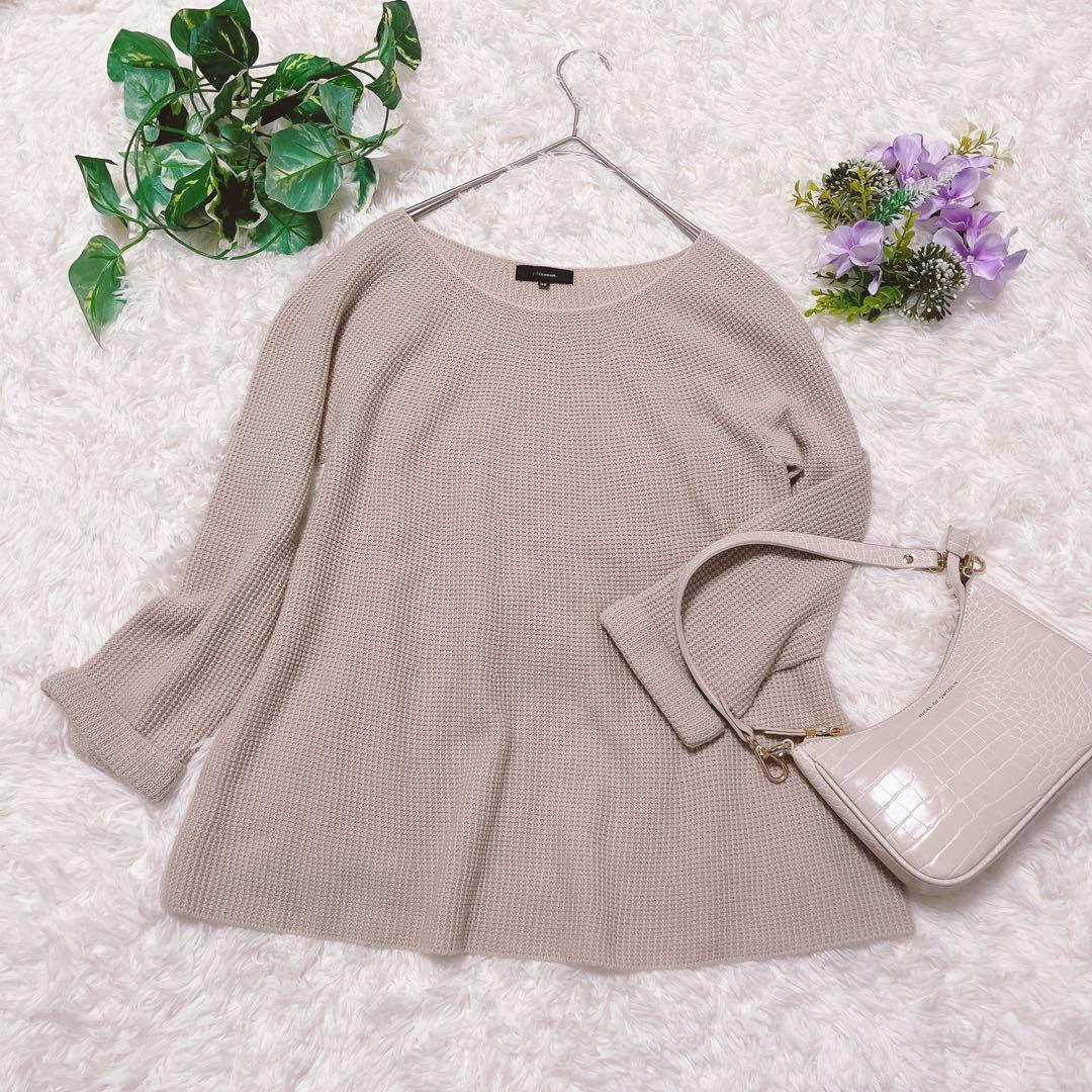 7-IDconcept ベージュニット M ワッフル編み 上品 シンプルきれいめ