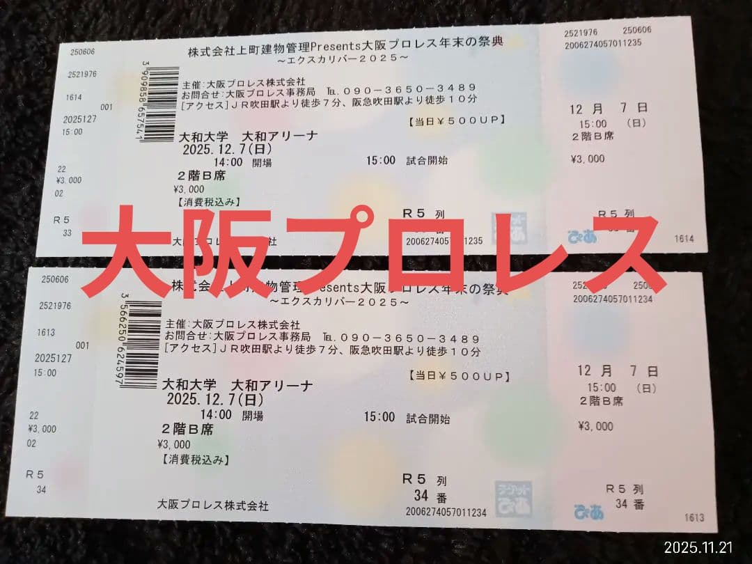 【値下げしました】大阪プロレス年末の祭典〜エクスカリバー2025〜 チケット2枚