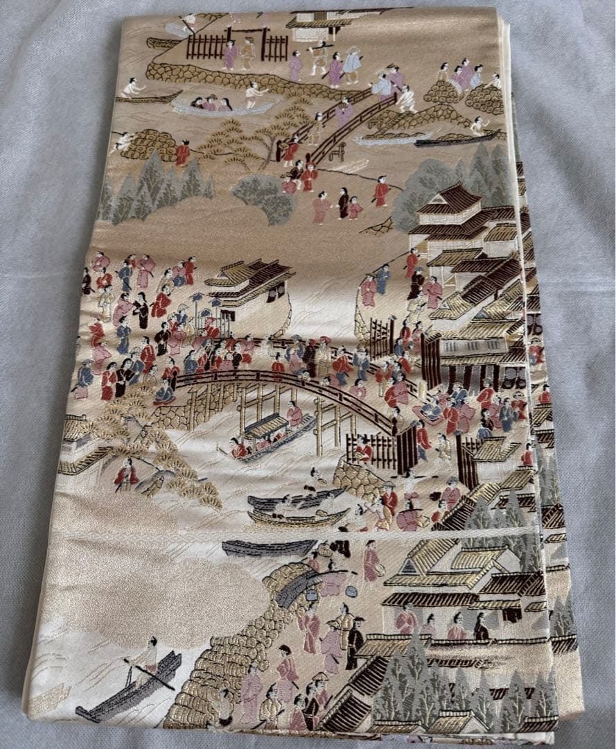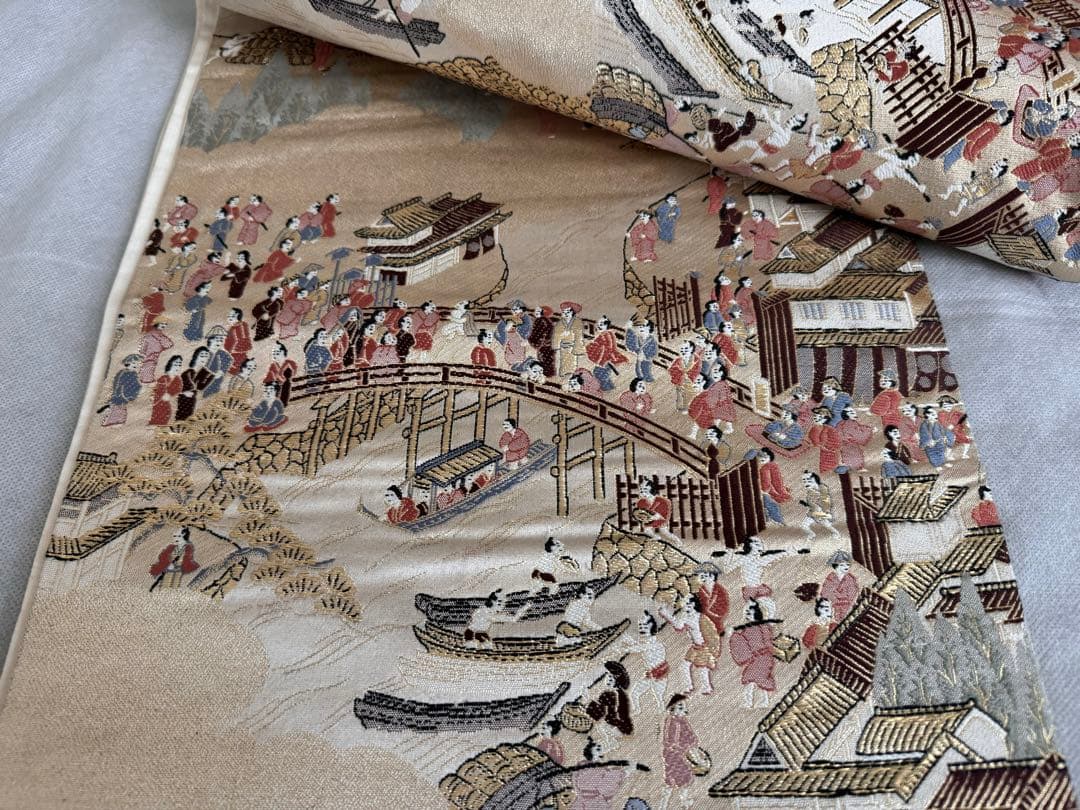 六通柄袋帯 唐織 洛中洛外図 金糸「A052」