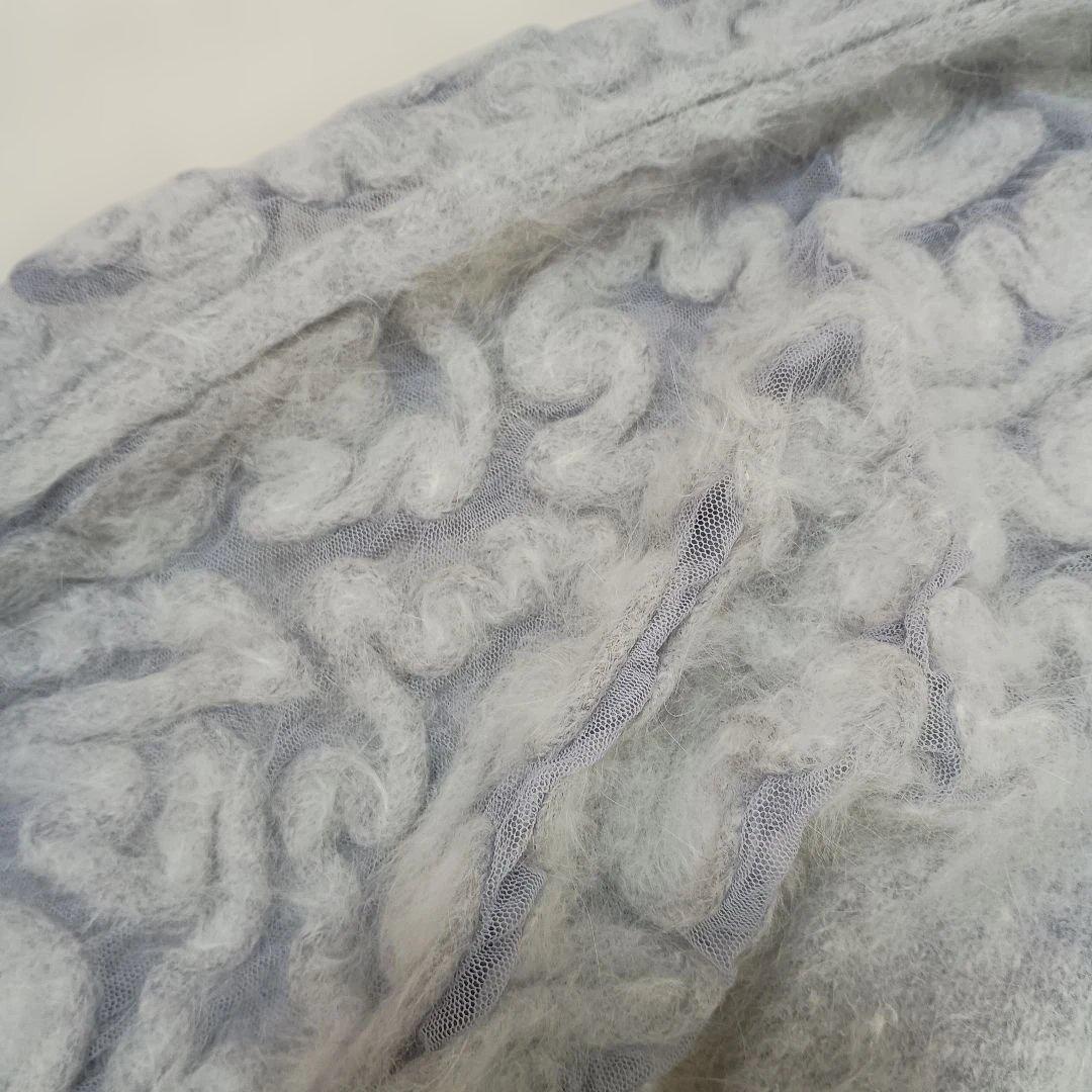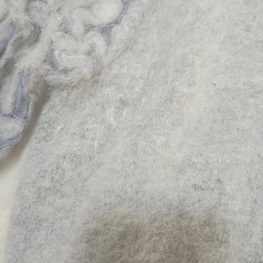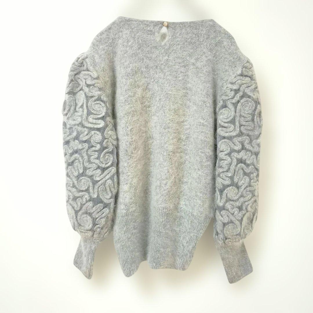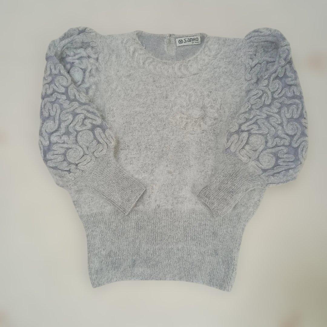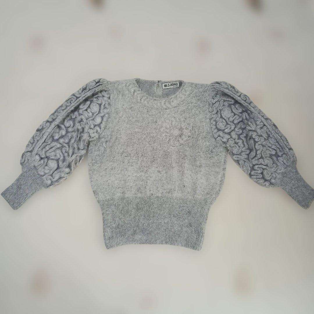 サンホー グレー ボリュームスリーブ ニット 刺繍