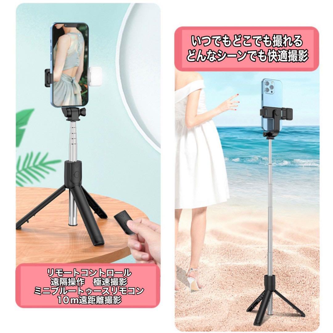 【色:ホワイト】LEDライト 三脚付きセルカ棒 自撮り棒 Bluetooth
