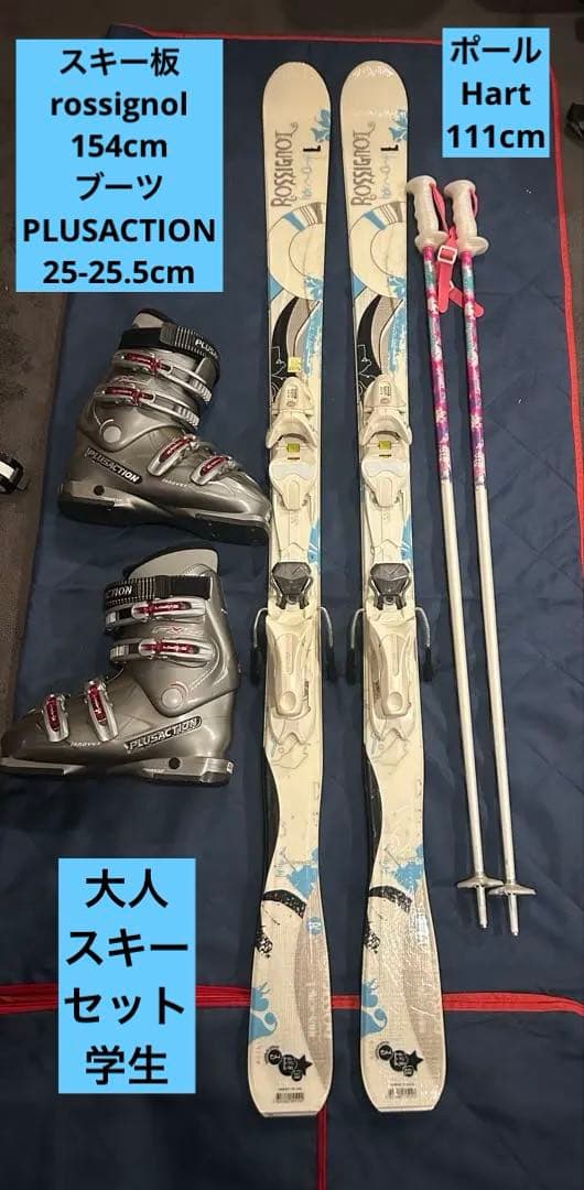 大人 スキーセットrossignol スキーセット154cm 学生 ロシニョール